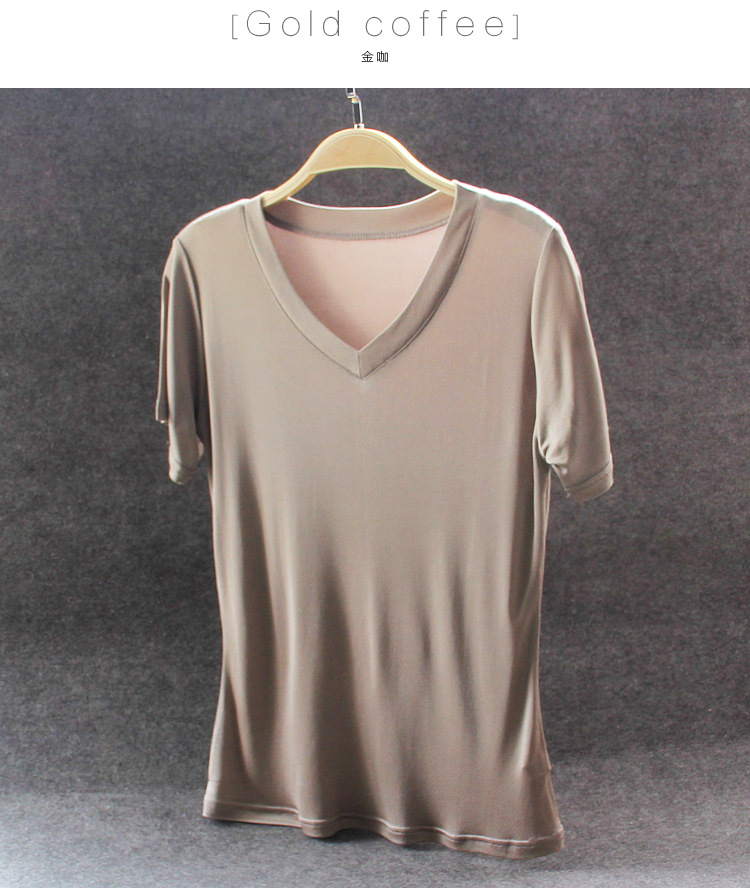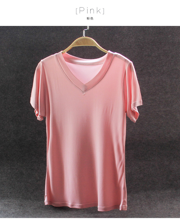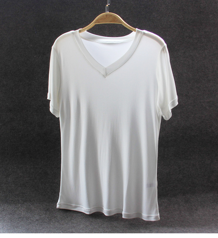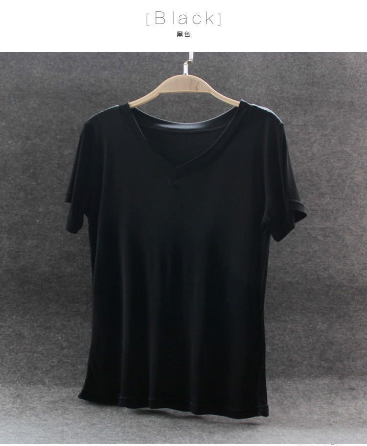 2023 실크 니트 솔리드 컬러 여성용 V넥 반팔 티셔츠 여성용 슬림핏 슬리밍 탑 여름용 화이트 베이스 슬리밍스토어 가기
