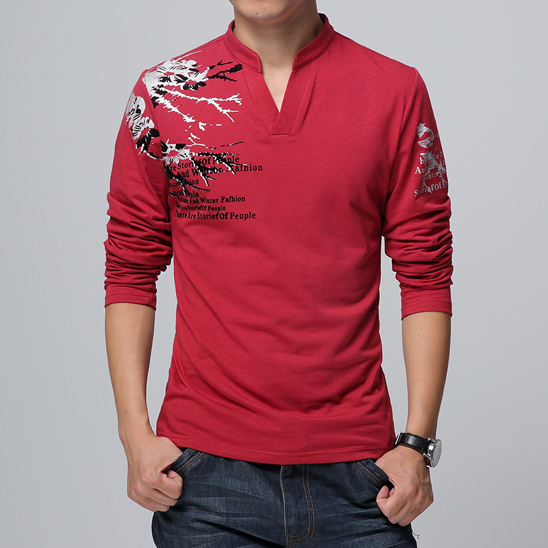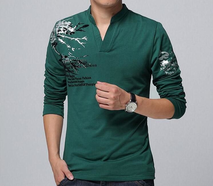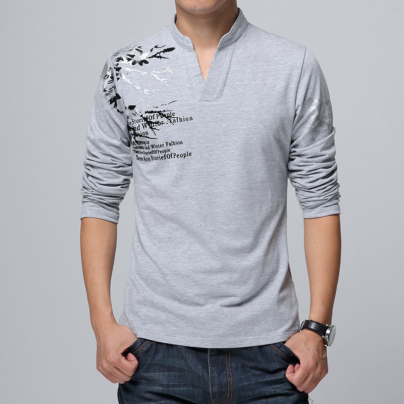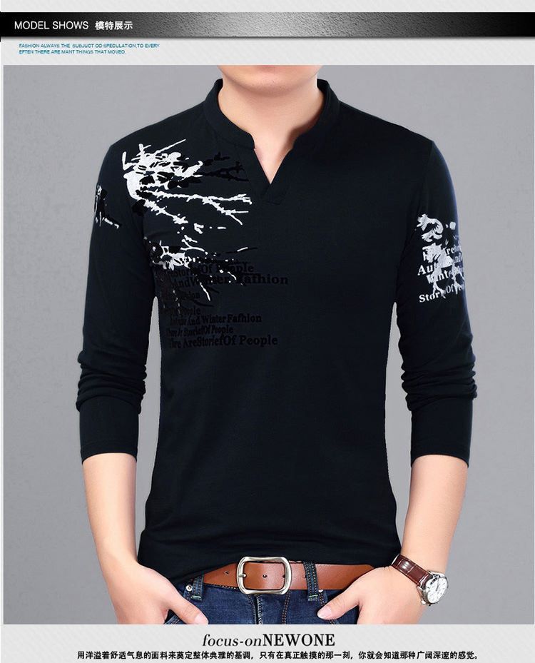 2024 남성 봄 가을 신사복 긴팔 티셔츠 남성 스탠드 칼라 바닥 셔츠 한국 패션 프린트 남성 티셔츠스토어 가기