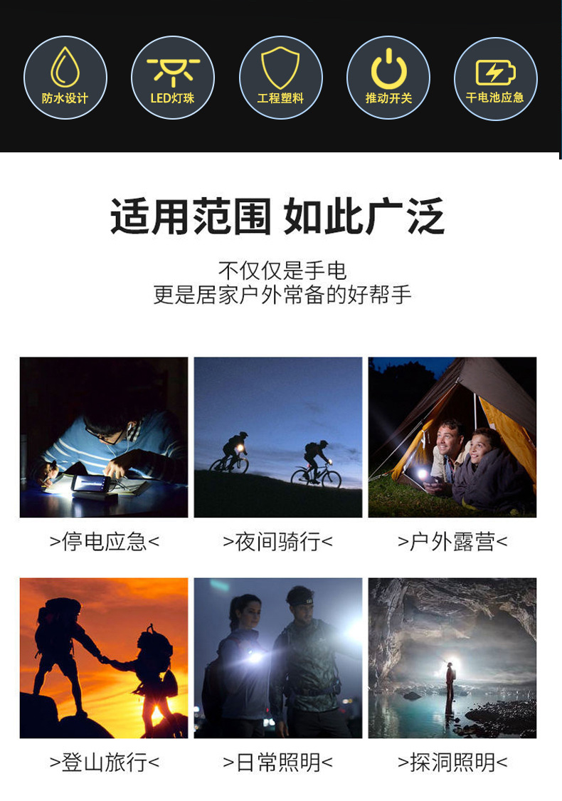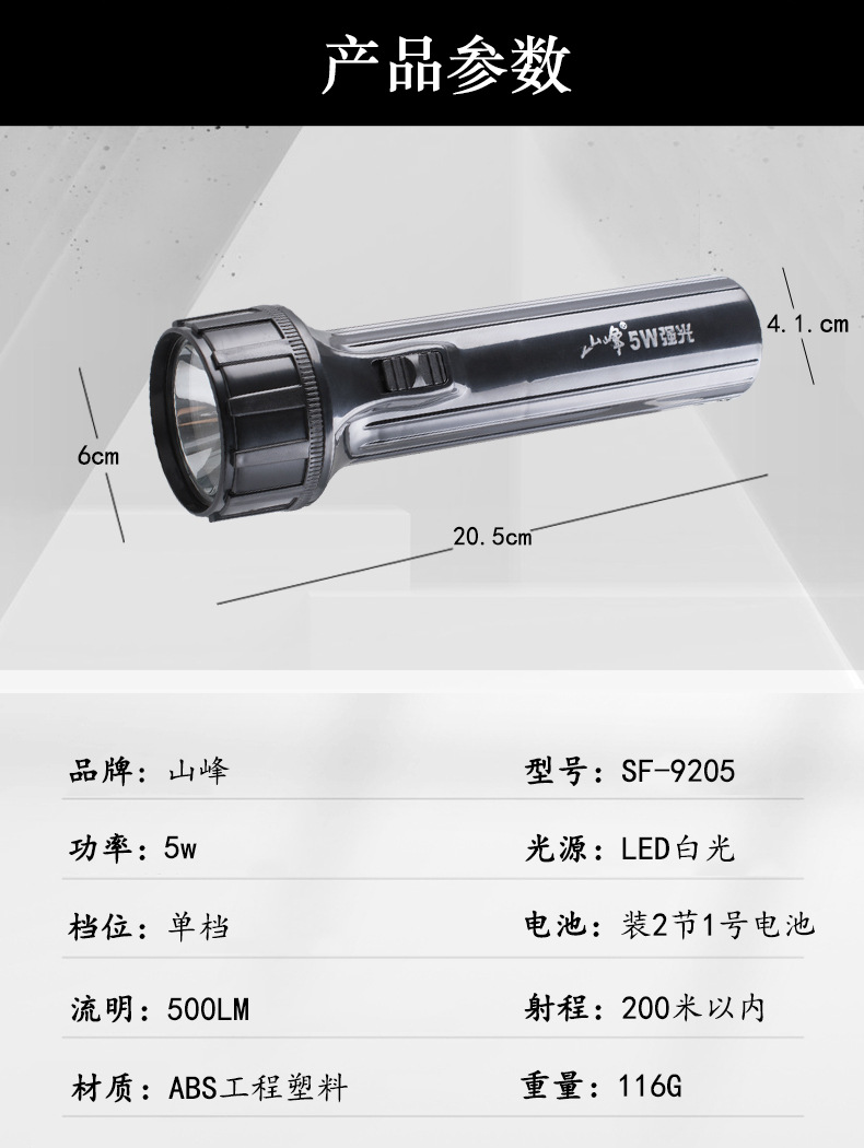 마운틴 SF-9205 팩 2 No.1 배터리 손전등 5W 슈퍼 밝은 LED 가정용 휴대용 조명 노인 및 학생스토어 가기
