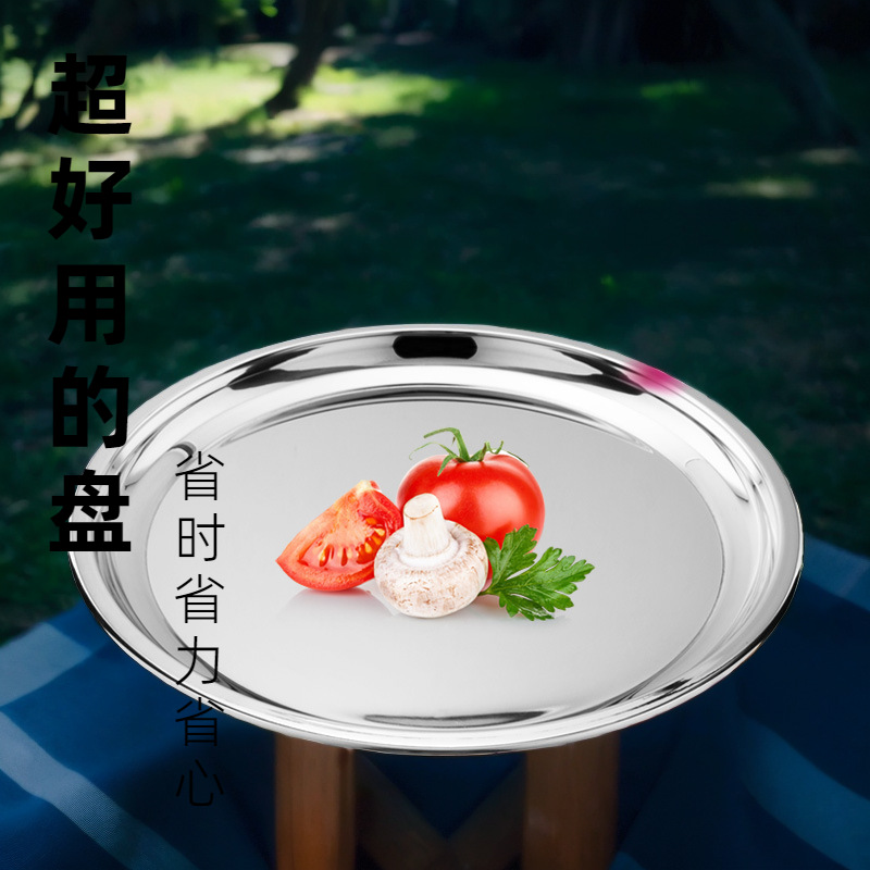대형 디스크 두꺼운 스테인레스 스틸 포도 플레이트 케이크 플레이트 시원한 피부 플레이트 대형 디스크 심화 평평한 바닥 트레이 28-70cm스토어 가기