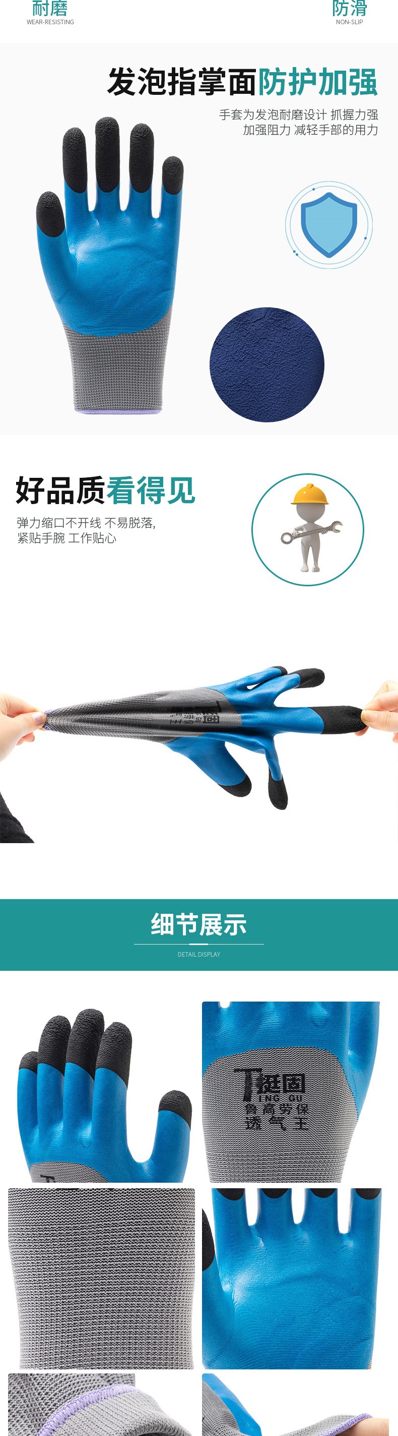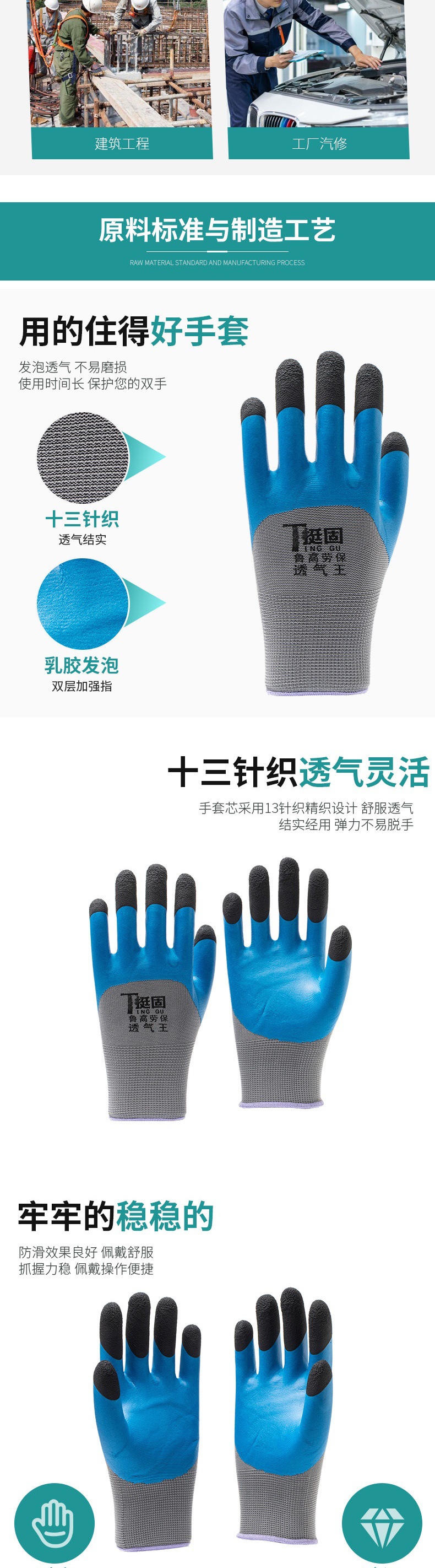 접착제가있는 통기성 내마모성 킹 노동 보호 장갑 손가락 노동 보호 장갑을 강화하는 미끄럼 방지 디핑 접착제가있는 도매 포터스토어 가기