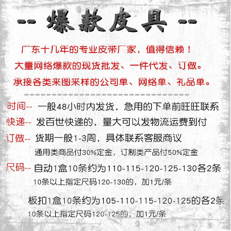 材质:头层牛皮(广州优质头层牛皮)每条都人工挑选过的