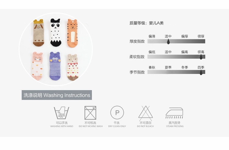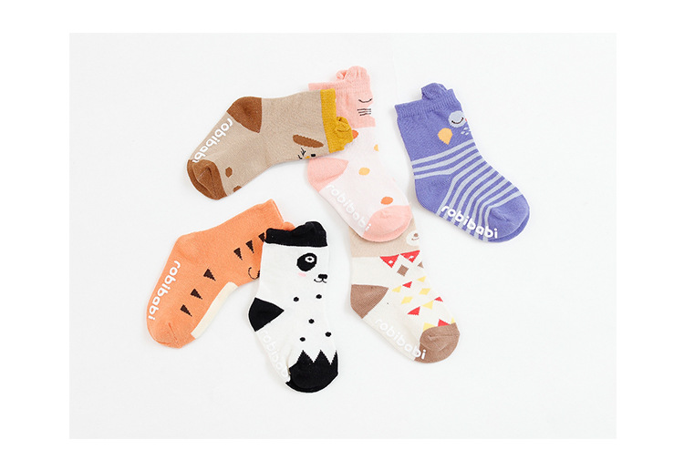 아마존 폭발 입체 만화 아기 양말 아기 어린이 분배 바닥 양말 6 색 작은 동물 양말스토어 가기