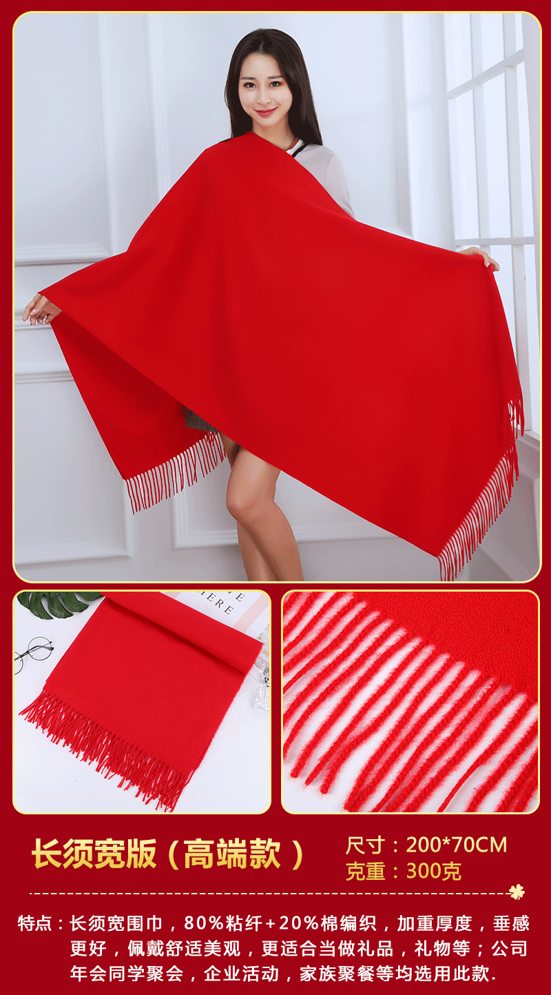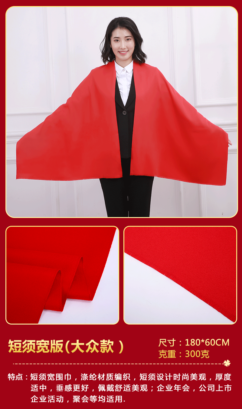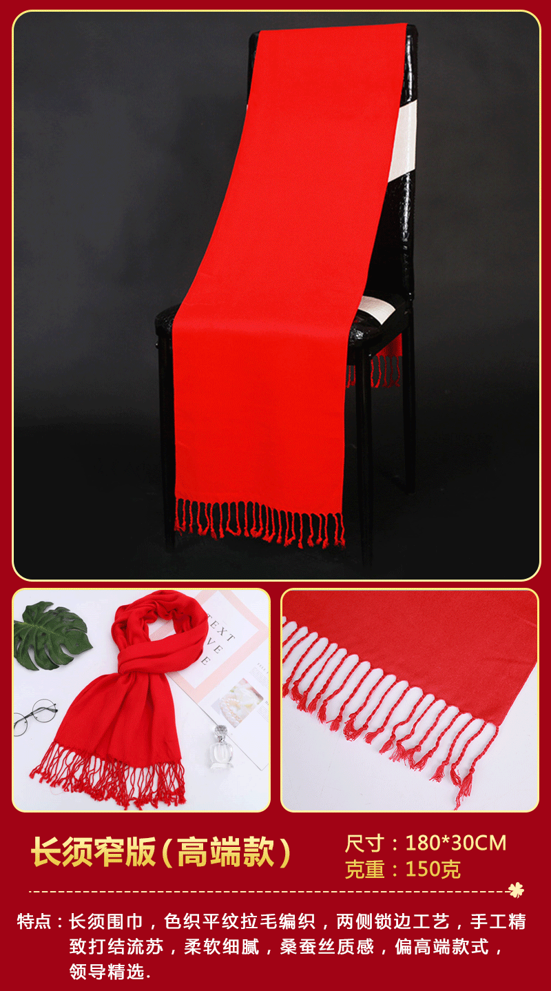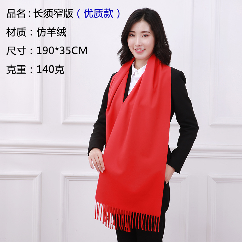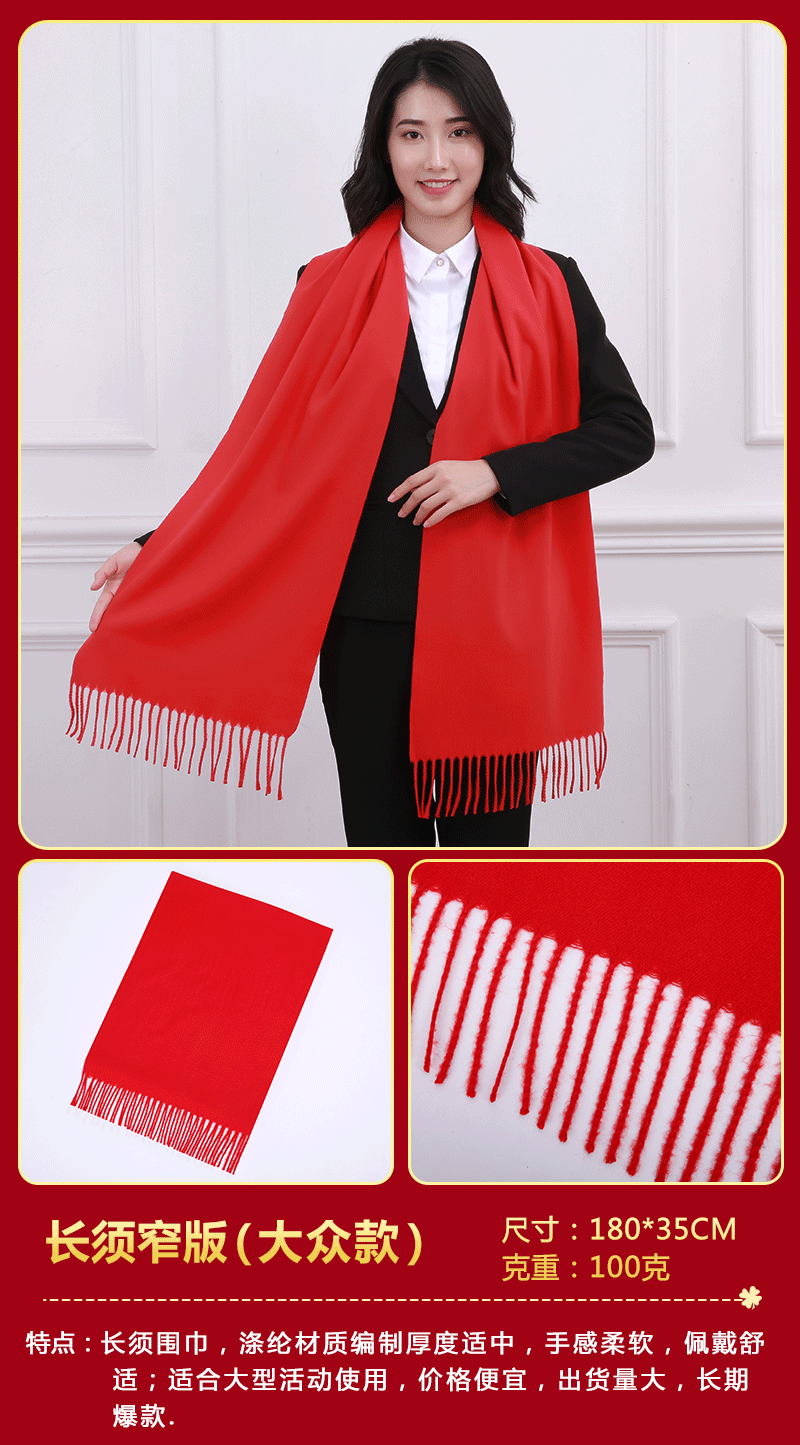 중국 레드 스카프 커스텀 로고 연례회 레드 스카프 자수 인쇄 활동 레드 숄 도매 레드 스카프