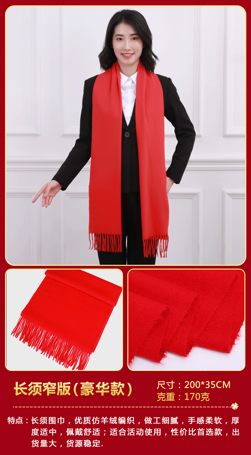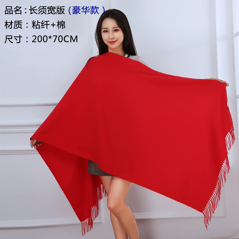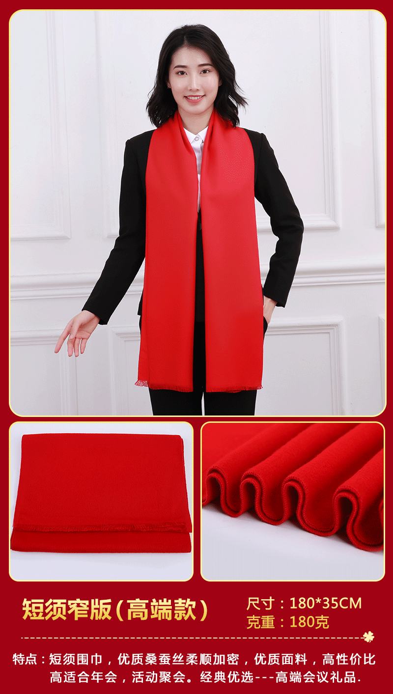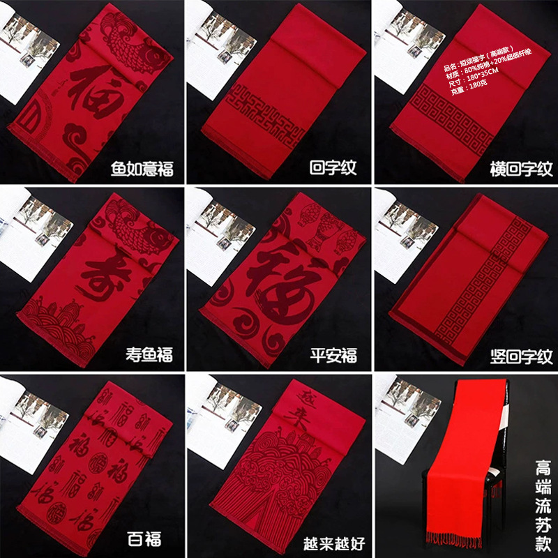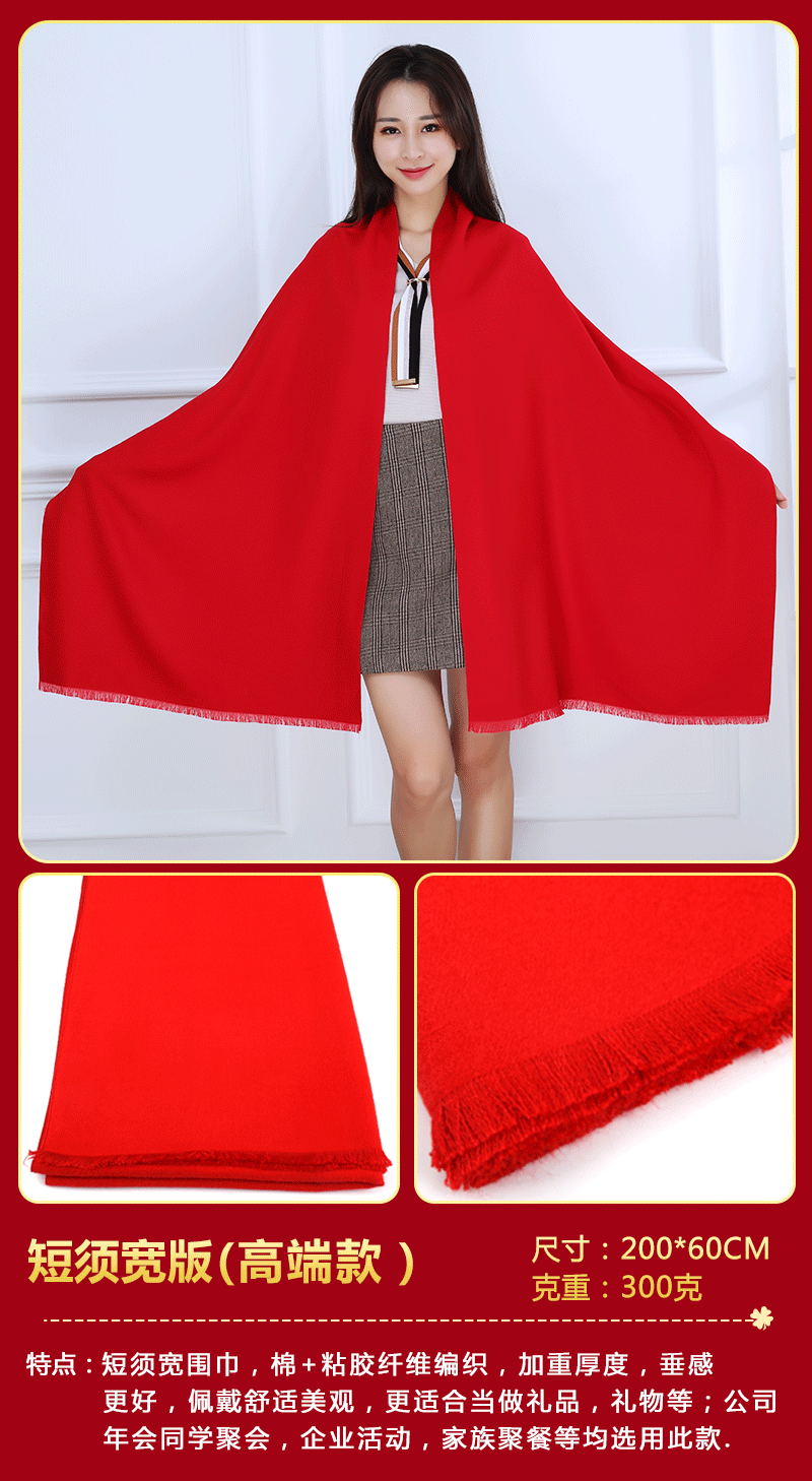중국 레드 스카프 커스텀 로고 연례회 레드 스카프 자수 인쇄 활동 레드 숄 도매 레드 스카프