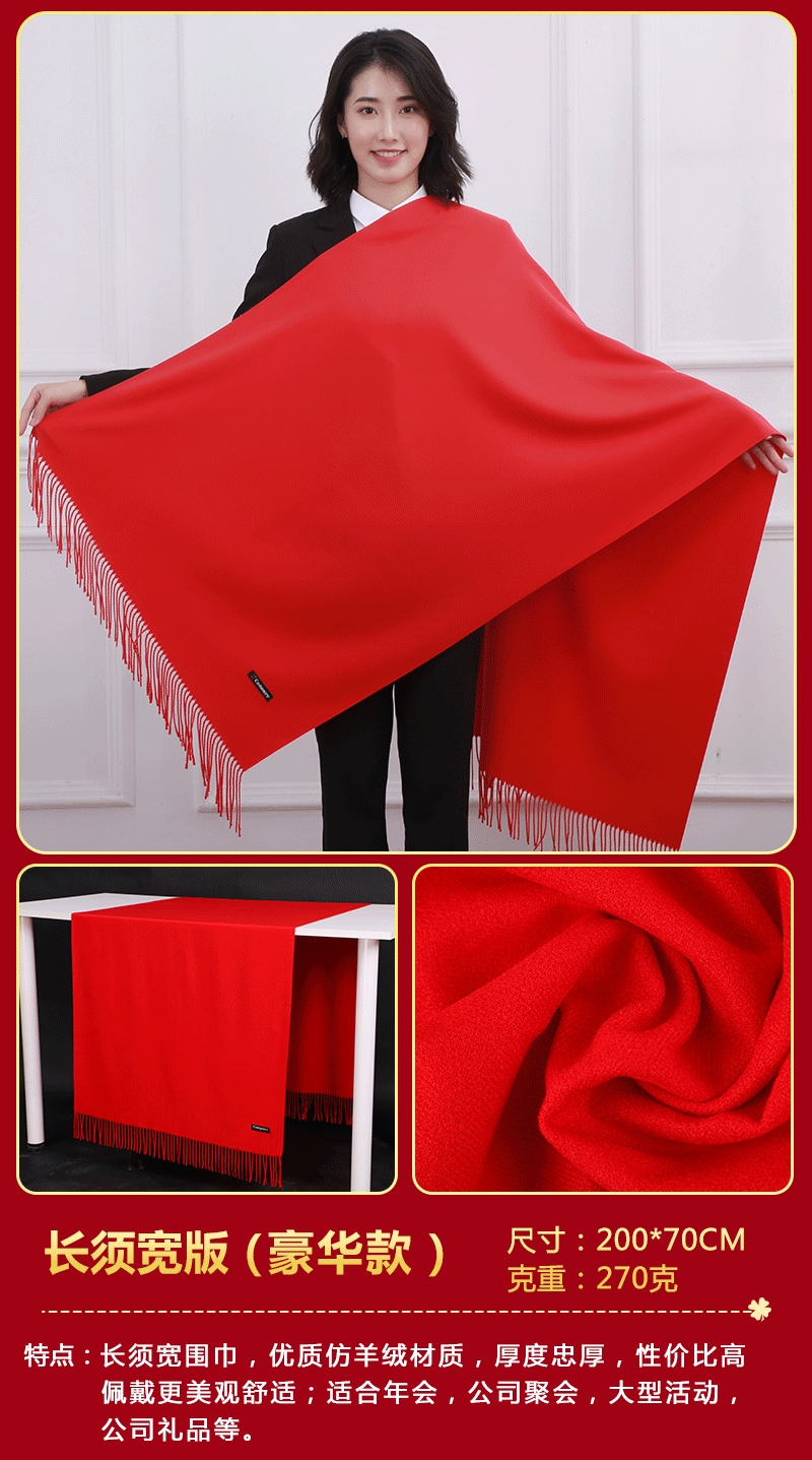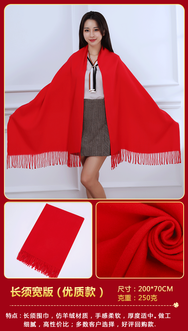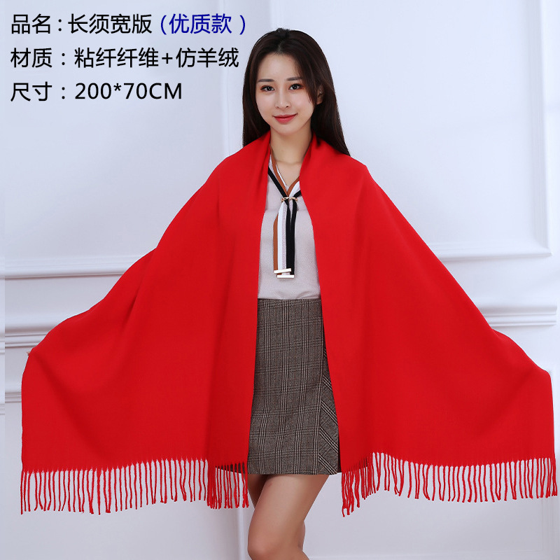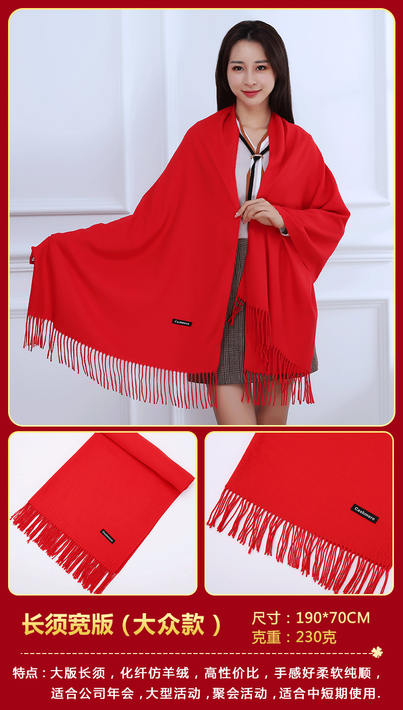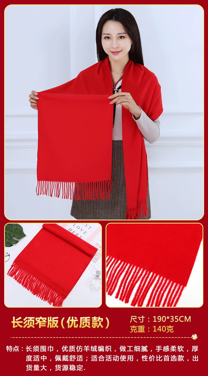 중국 레드 스카프 커스텀 로고 연례회 레드 스카프 자수 인쇄 활동 레드 숄 도매 레드 스카프