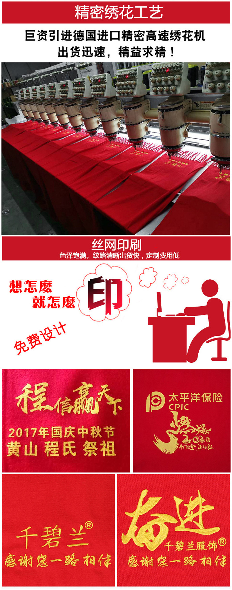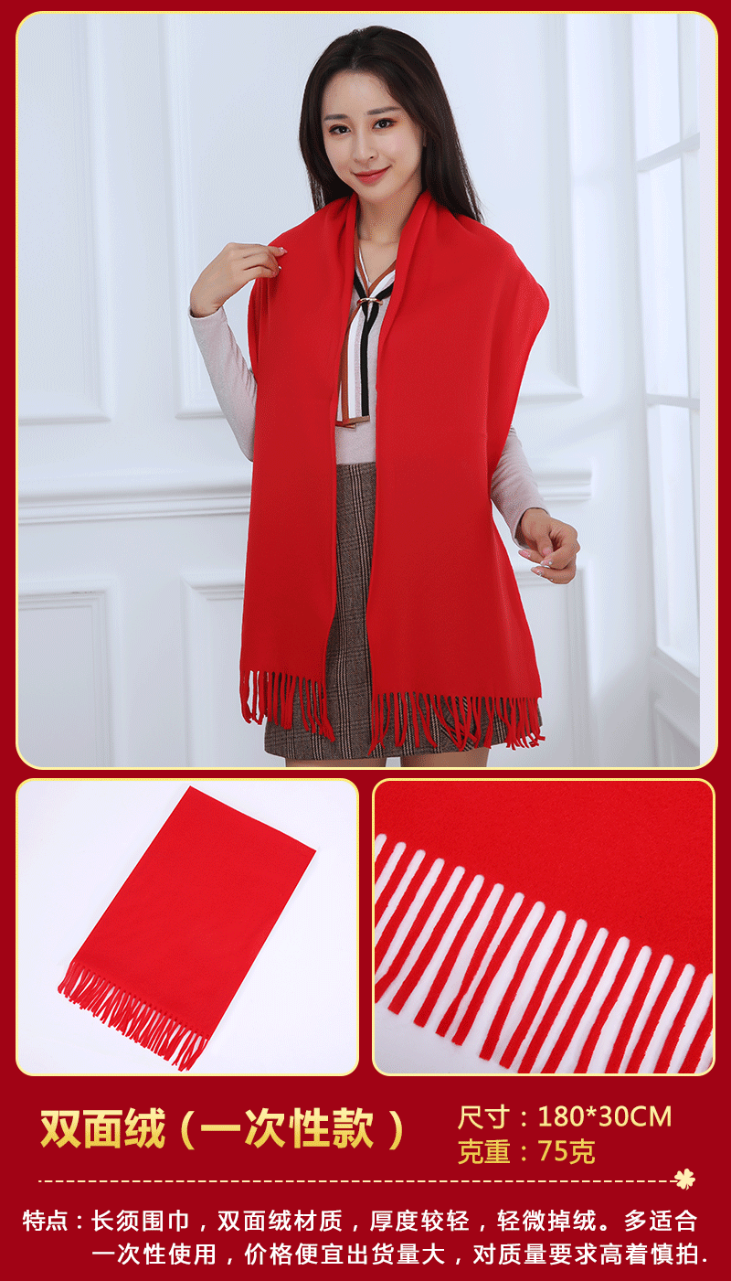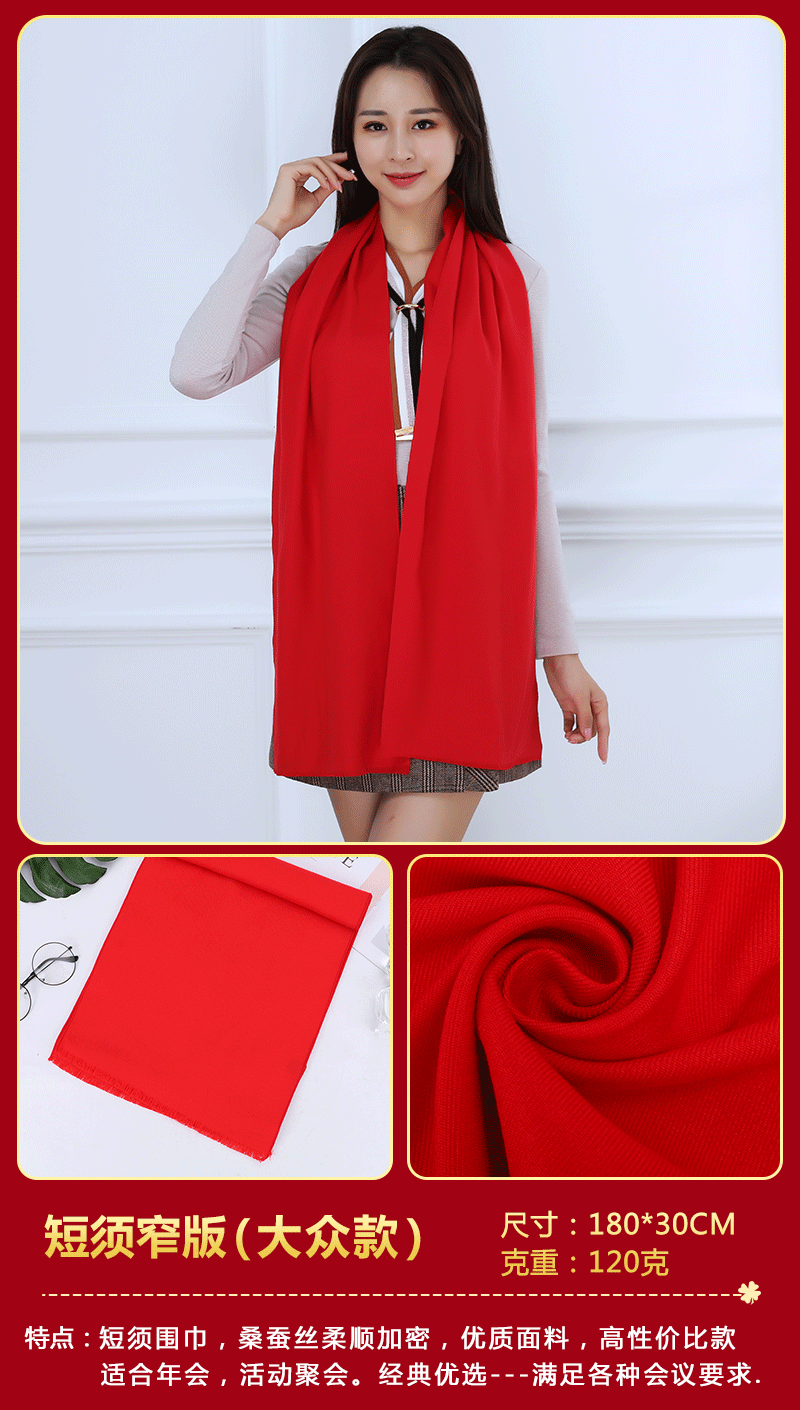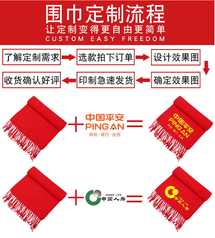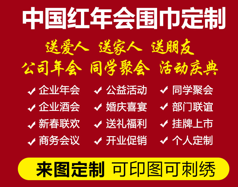 중국 레드 스카프 커스텀 로고 연례회 레드 스카프 자수 인쇄 활동 레드 숄 도매 레드 스카프스토어 가기