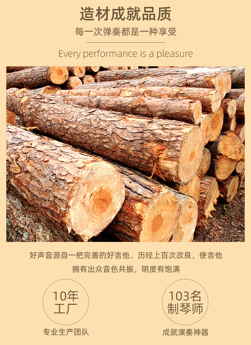 • 40 인치 JF 스프루스 사프리 베니어-로그