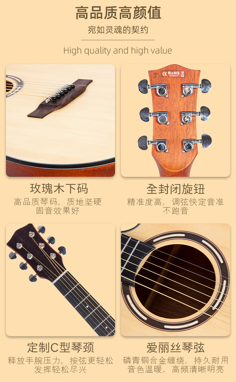 41 인치 어쿠스틱 어쿠스틱 기타 36 인치 어린이 기타 도매 초보자 엔트리 레벨 매트 베니어 솔리드 우드 기타스토어 가기