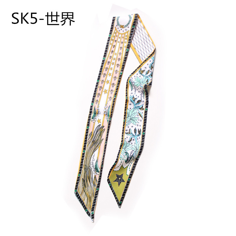 타로 시리즈 양면 인쇄 능직물 실크 타이 백 핸들 스카프 슬림 좁은 리본 스카프 여성용스토어 가기