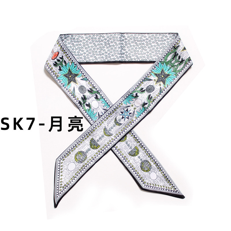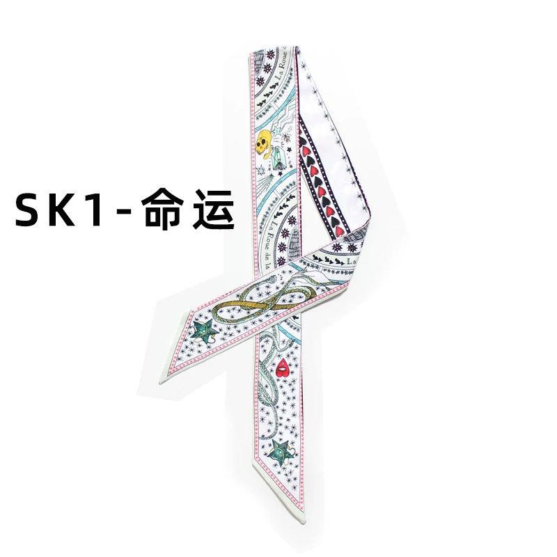 타로 시리즈 양면 인쇄 능직물 실크 타이 백 핸들 스카프 슬림 좁은 리본 스카프 여성용