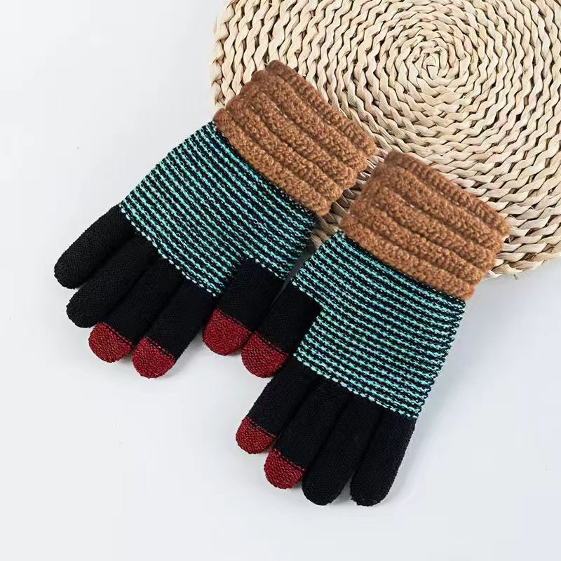 장갑 여자의 겨울 기모 두꺼운 한국어 버전 감기 방지 귀여운 승마 터치 스크린 따뜻한 양모 니트 장갑 도매
