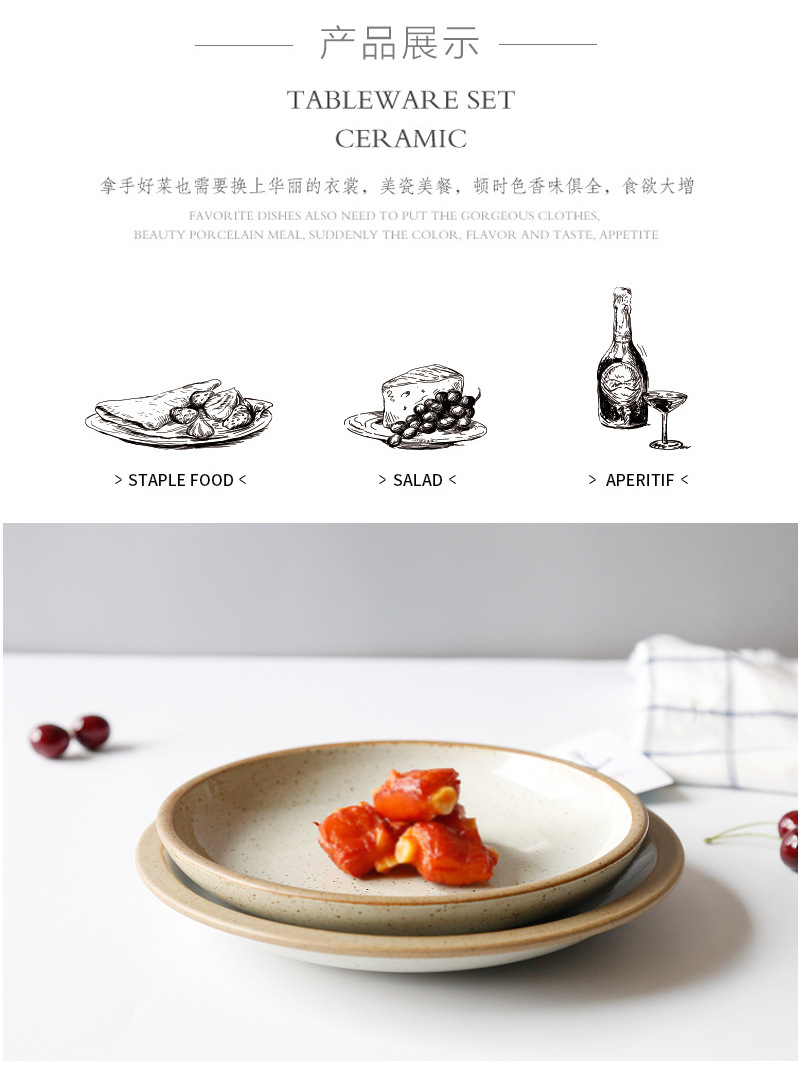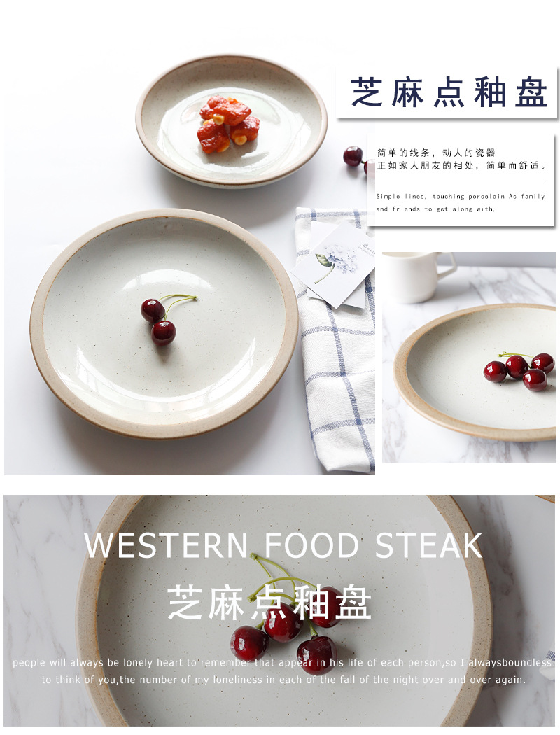 일본식 간단한 세라믹 접시 가정 창조적 인 서양 음식 접시 아침 식사 접시 스테이크 접시 깊은 접시 둥근 만두 접시 도매스토어 가기