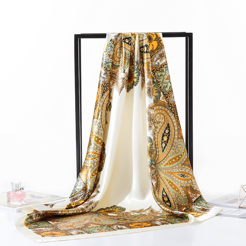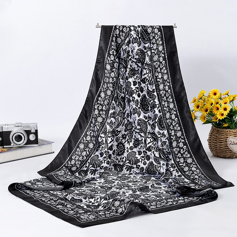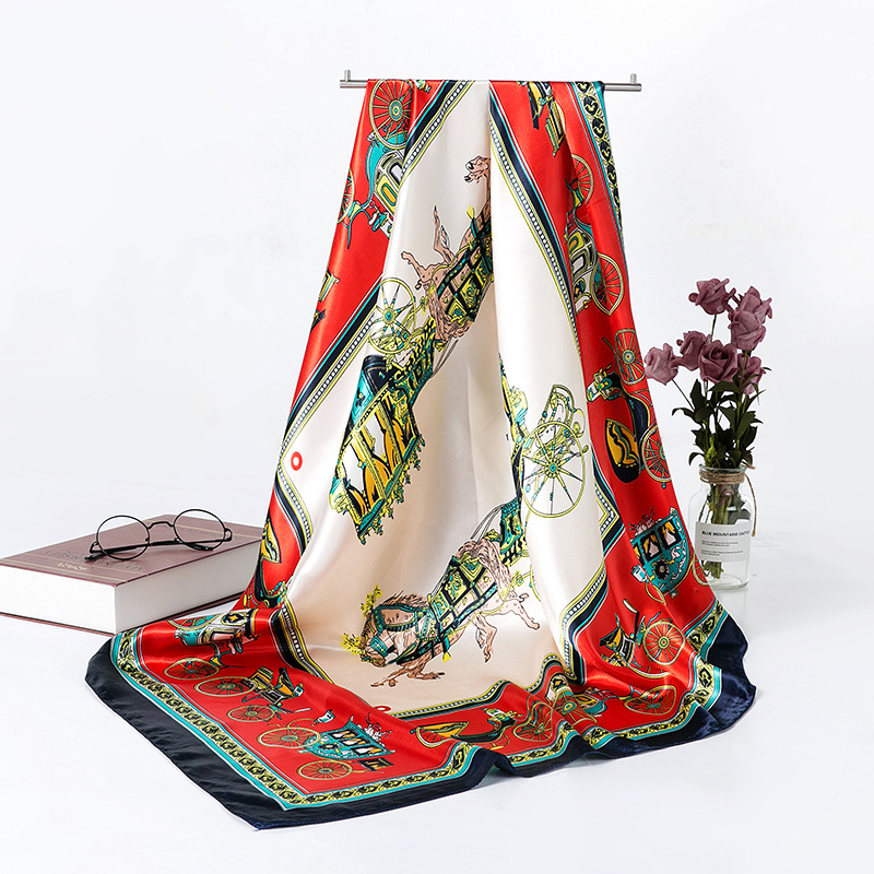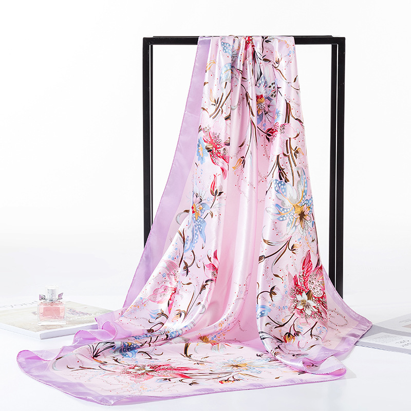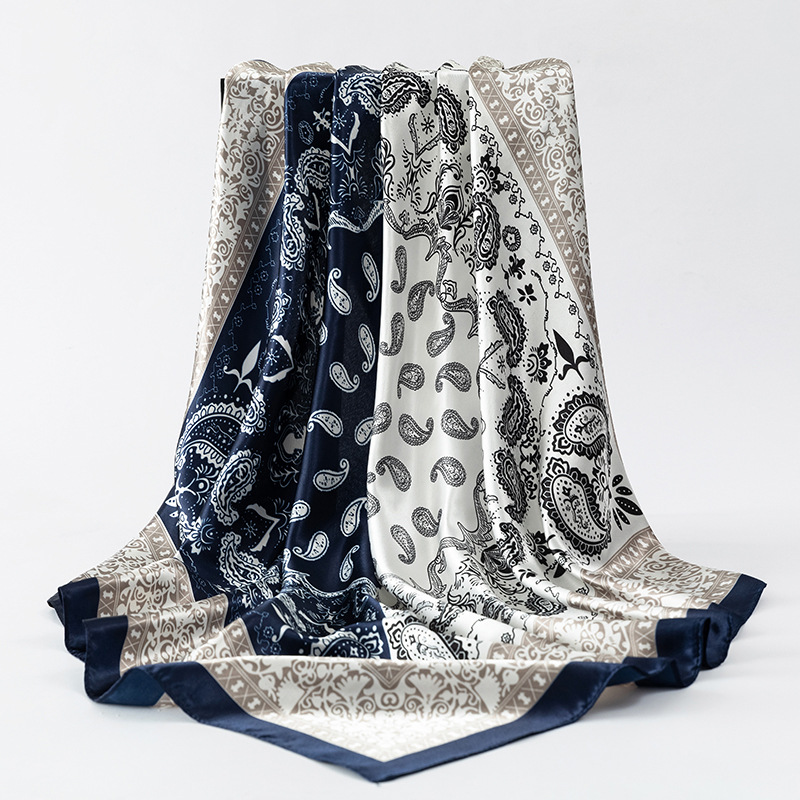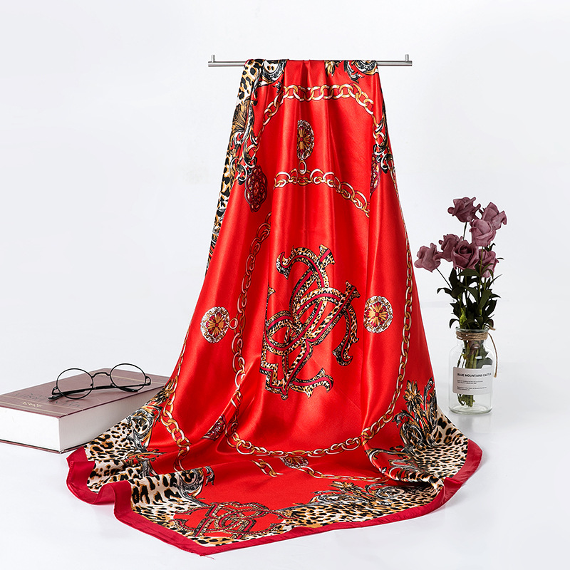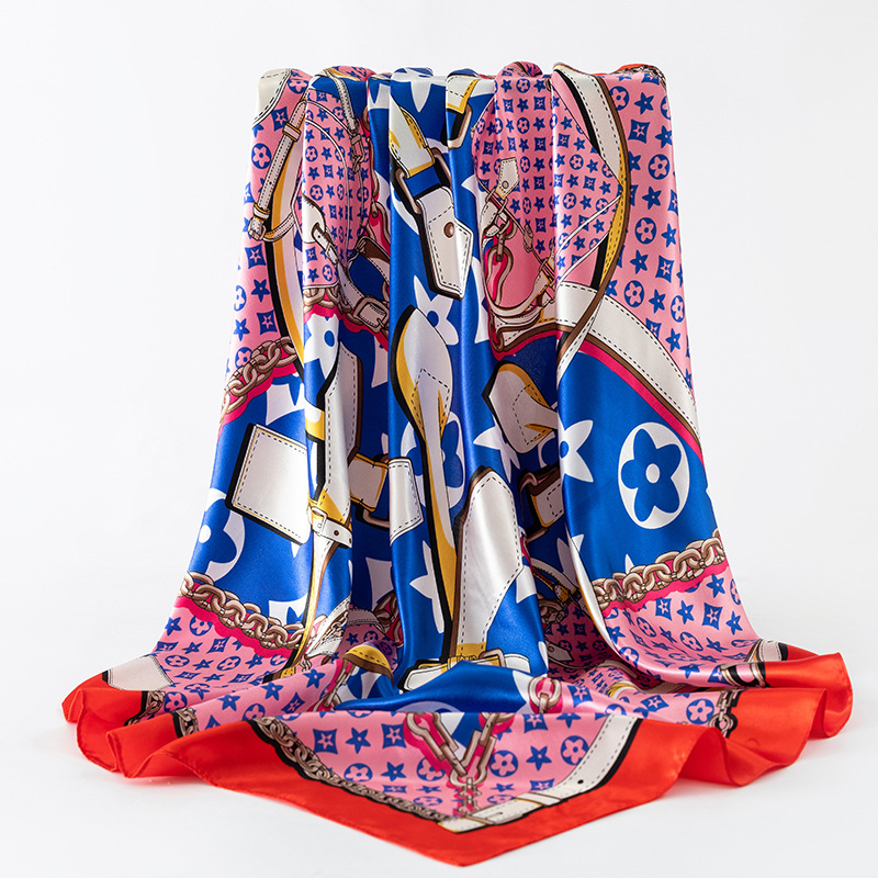 여성용 대형 정사각형 90cm 선물 스카프 봄과 가을 새 스카프 새틴 모조 실크 인쇄 대형 목도리 도매스토어 가기