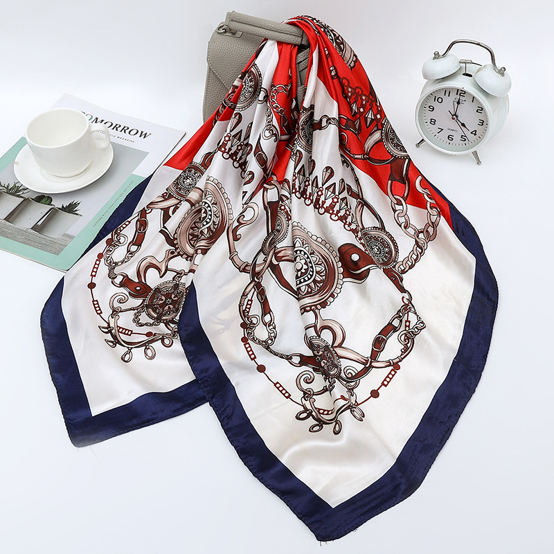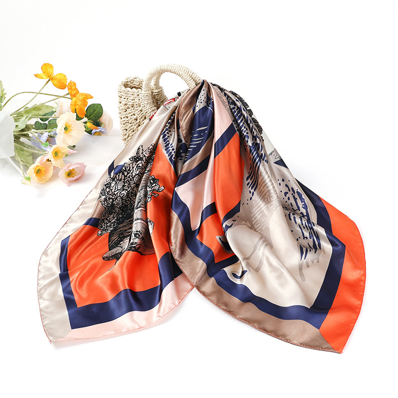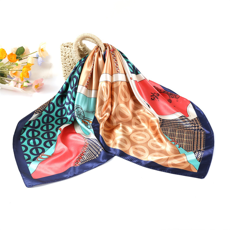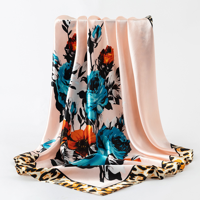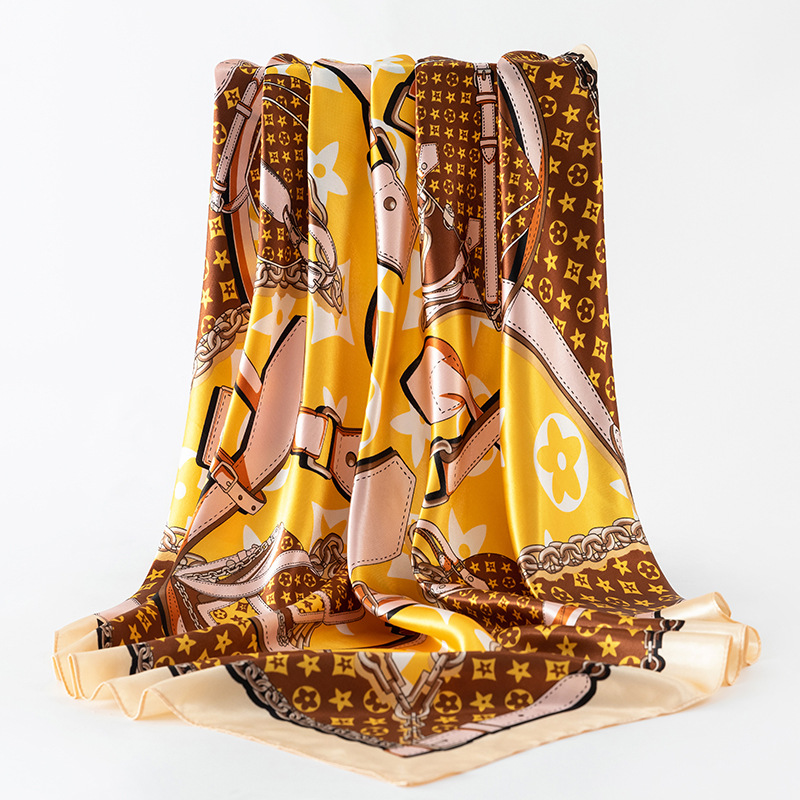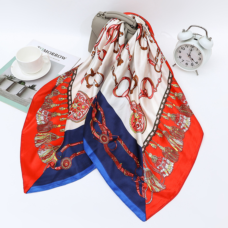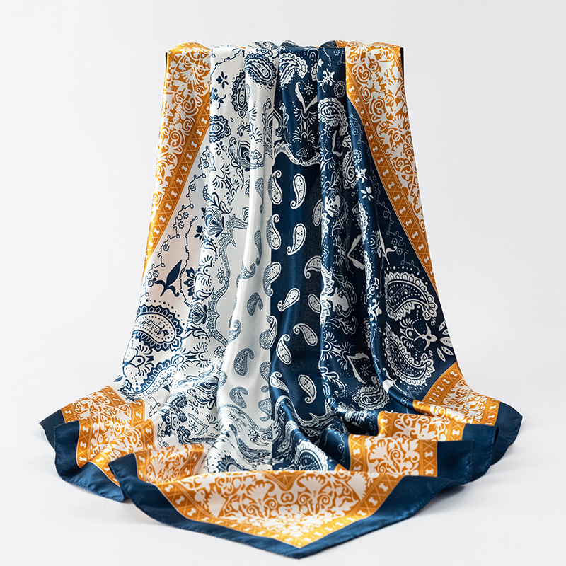 여성용 대형 정사각형 90cm 선물 스카프 봄과 가을 새 스카프 새틴 모조 실크 인쇄 대형 목도리 도매스토어 가기