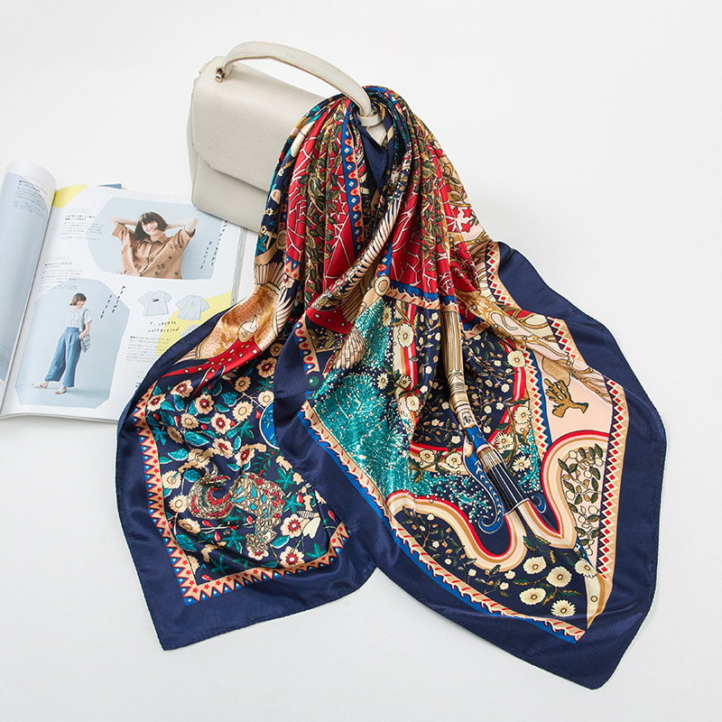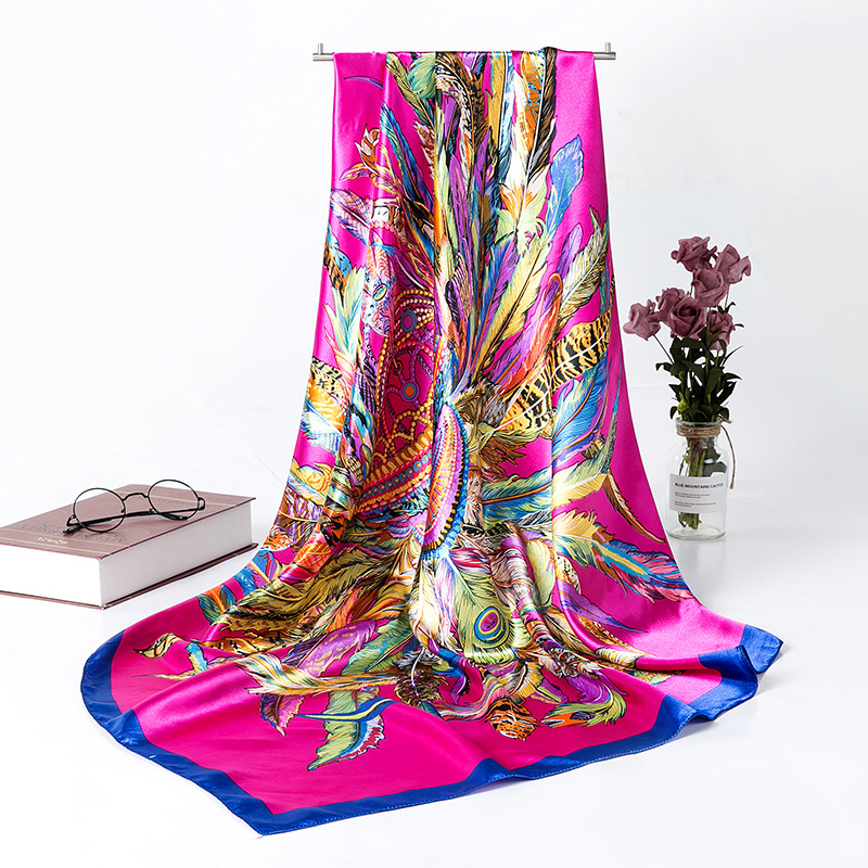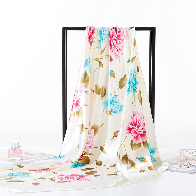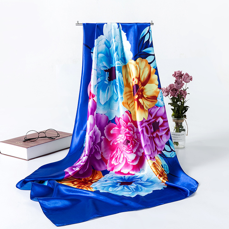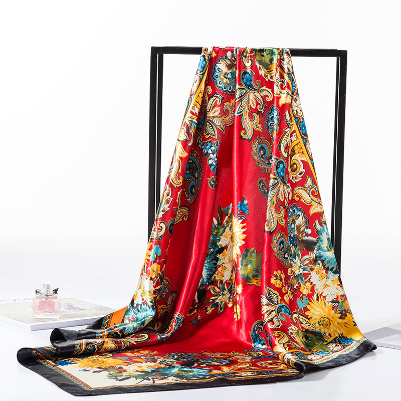 여성용 대형 정사각형 90cm 선물 스카프 봄과 가을 새 스카프 새틴 모조 실크 인쇄 대형 목도리 도매