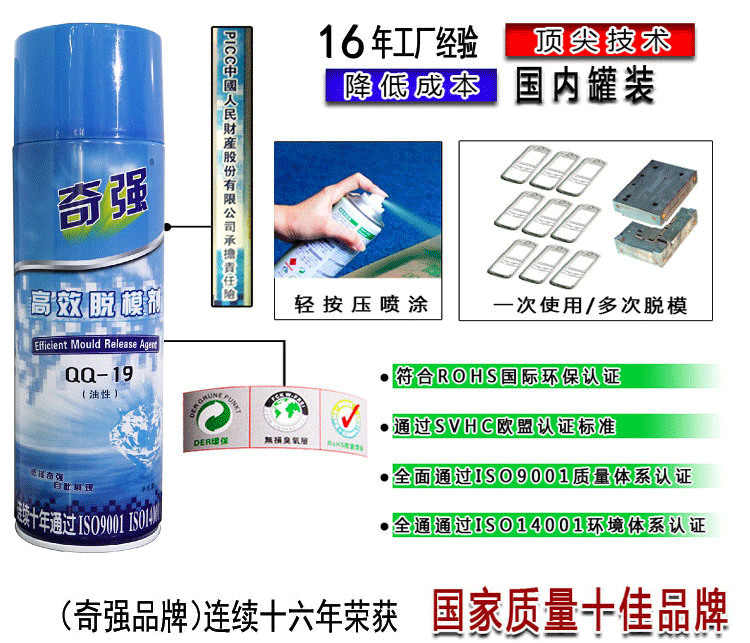 脱模剂适用的范围很:如电视机外壳、电脑外壳、冰箱壳、汽车尾板、儿童玩具汽车、大型机械外壳还有一些桌椅大件的物品,汽车配件等,这个就要用到我们奇强的QQ-19油性的脱模剂,这样方便脱模。 又如:一些中等的塑胶件物品,小型的电子产品外壳,中小型的塑胶部件,充电器外壳,手机外壳,鼠标,键盘,多媒体小音箱外壳等---这个就要用到我们奇强的QQ-18中性脱模剂了。再如:脱模不 影响丝印 、电镀、 烫金、 喷油、 粘贴等第二次加工的,注塑件,如塑胶笔外表要丝印图案与印字,充电器外壳丝印,就要用我们了奇强的QQ-17干性脱模剂。再如生产食品级的注塑产品:一次性餐盒、纸杯、塑胶杯、月饼盒内的吸塑盒,饮料杯、矿泉水杯等等,可以用我们奇强的QQ-16脱模剂了。 |