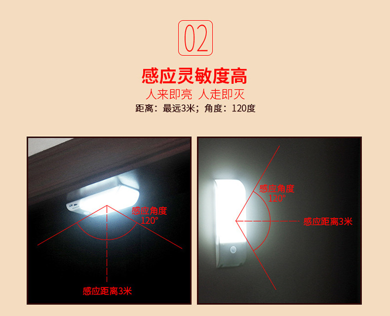 6、感应灵敏距离:最远3米,感应灵敏角度:水平60度,垂直30度