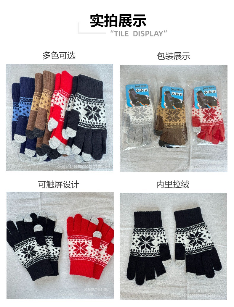 여성용 팔각형 자전거 장갑 겨울용 벨벳 안감 두꺼운 한국 스타일 방한 귀여운 야외 니트 따뜻한 모직 장갑스토어 가기