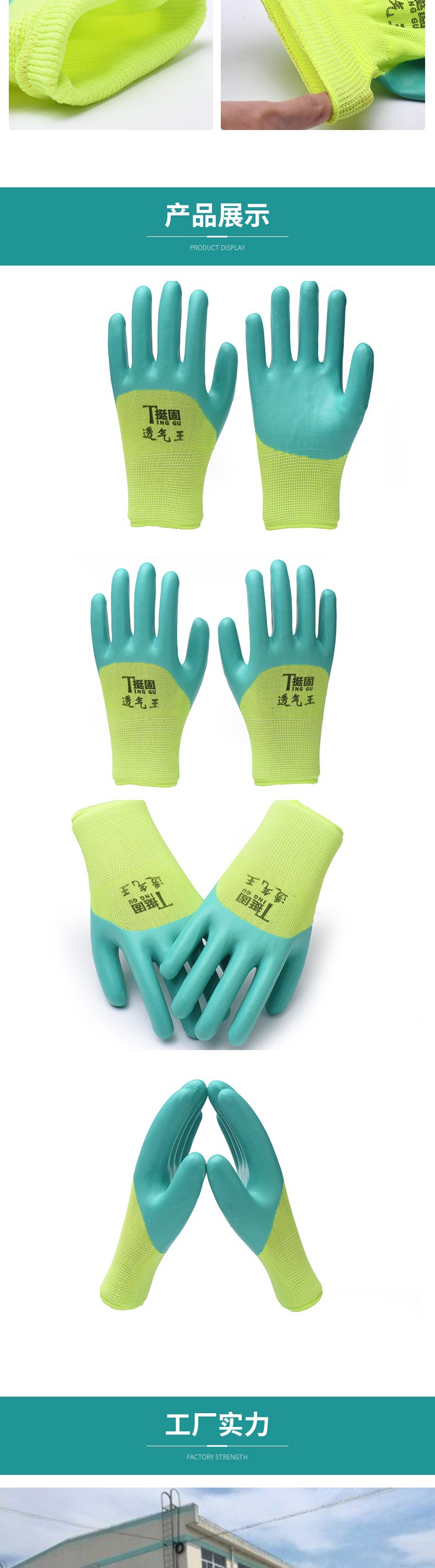 통기성 킹 딥 접착제 노동 보호 장갑 주름 폼 노동 장갑 도매 내마모성 미끄럼 방지 노동 보호 장갑스토어 가기