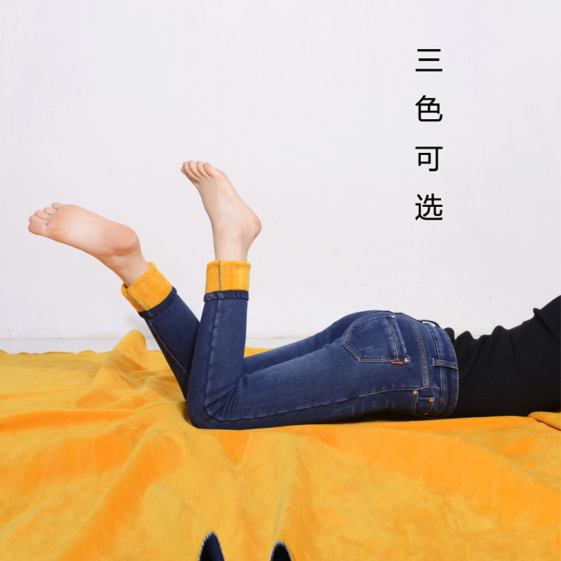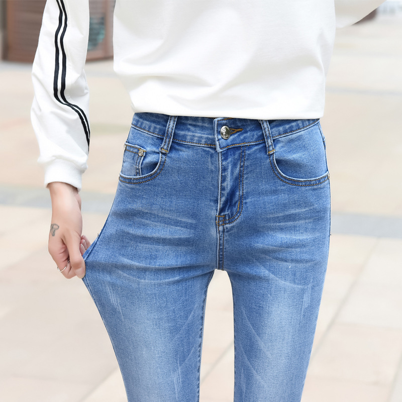 2025 봄, 가을, 겨울 신상 중간 허리 슬림핏 데님 여성 바지 신축성 있는 공장 직판 단일 스타일 및 플리스 안감스토어 가기