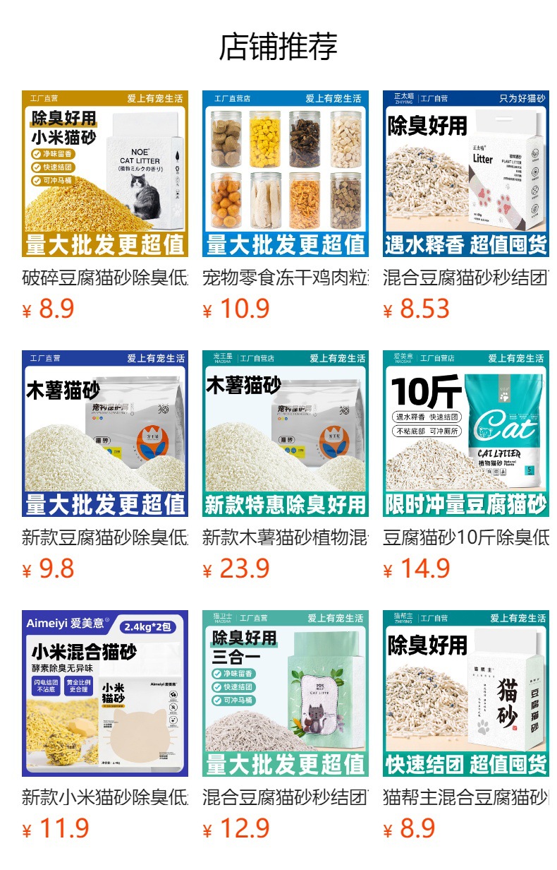 새로운 두부 고양이 쓰레기 낮은 먼지 강한 덩어리는 벤토나이트 혼합 카사바 고양이 쓰레기 2.3kg 공장 도매