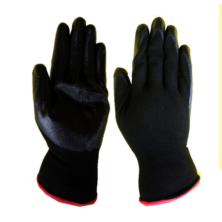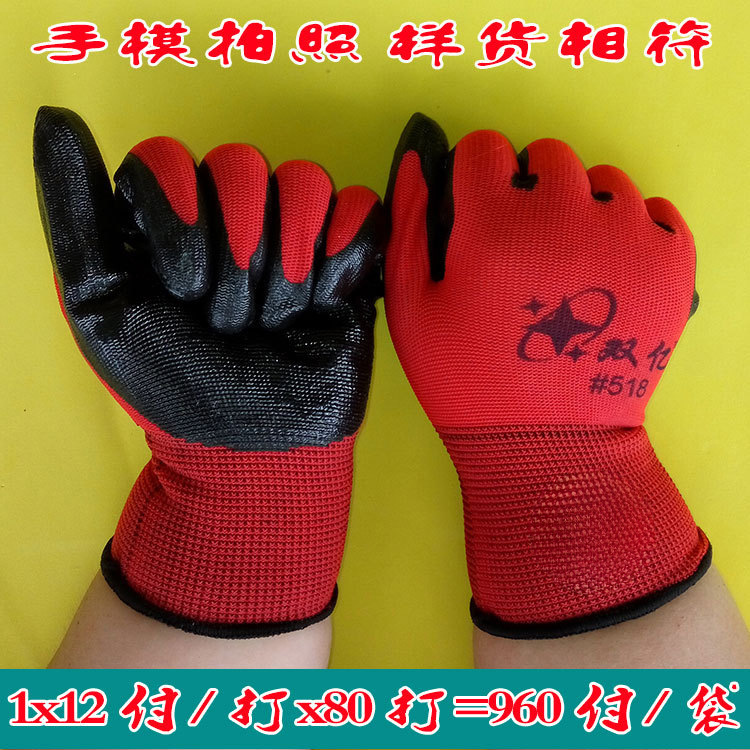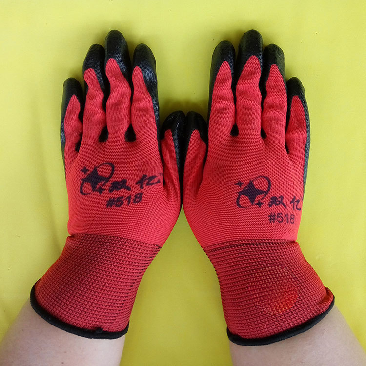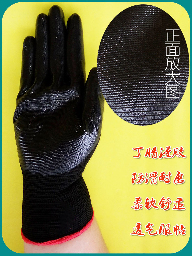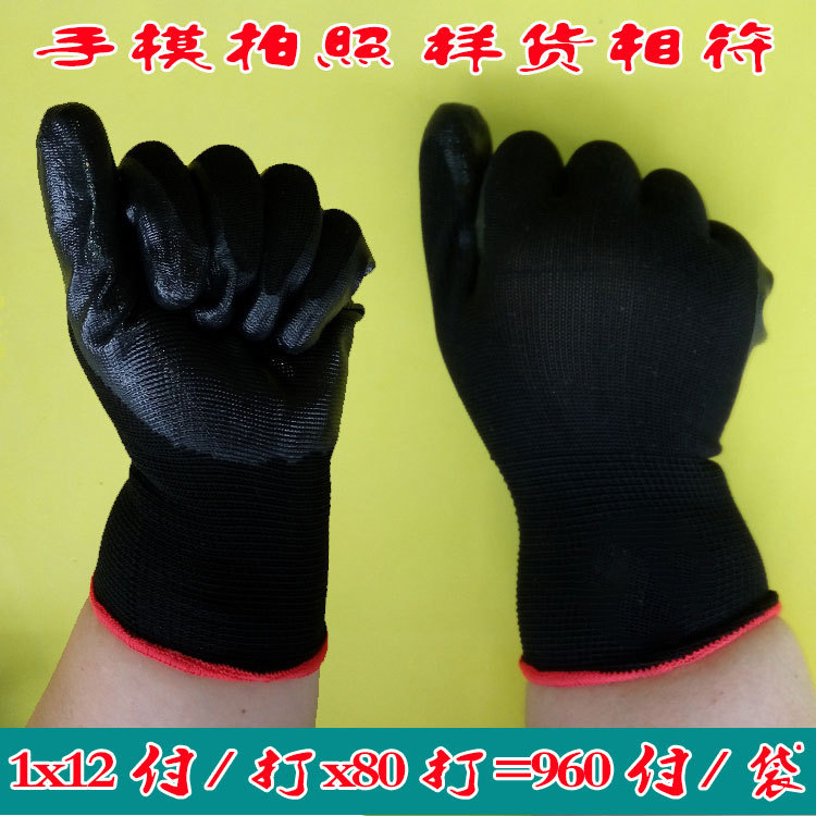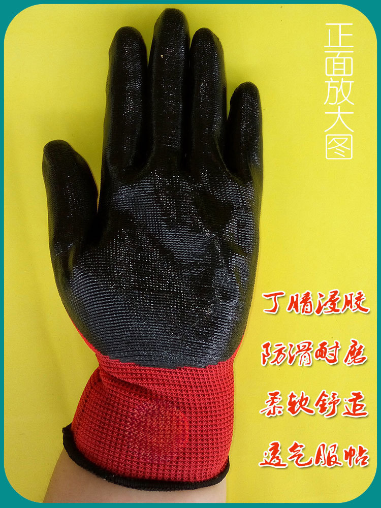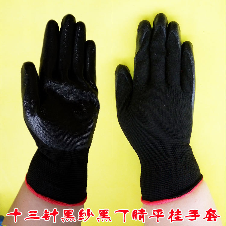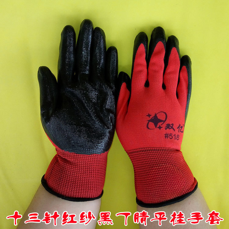 【商品名称】:双亿13针尼龙黑纱黑丁腈 红纱黑丁腈防滑防油劳保手套