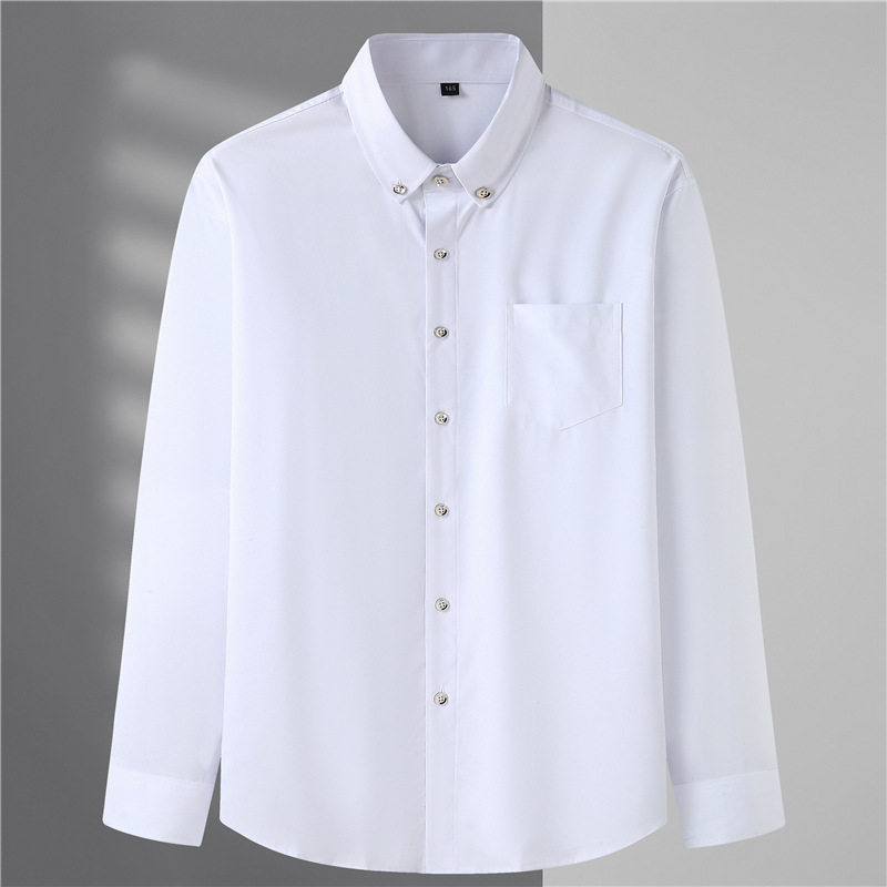 봄과 가을 뚱뚱한 남자 느슨한 캐주얼 셔츠 뚱뚱한 남자 초대형 긴 소매 셔츠 단색 비즈니스 남성 탑스토어 가기