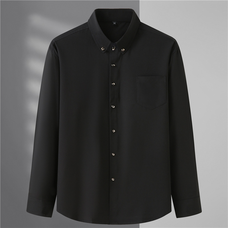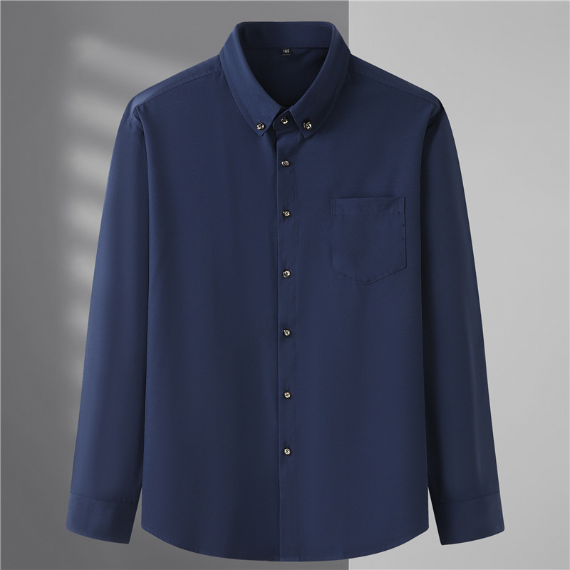 봄과 가을 뚱뚱한 남자 느슨한 캐주얼 셔츠 뚱뚱한 남자 초대형 긴 소매 셔츠 단색 비즈니스 남성 탑