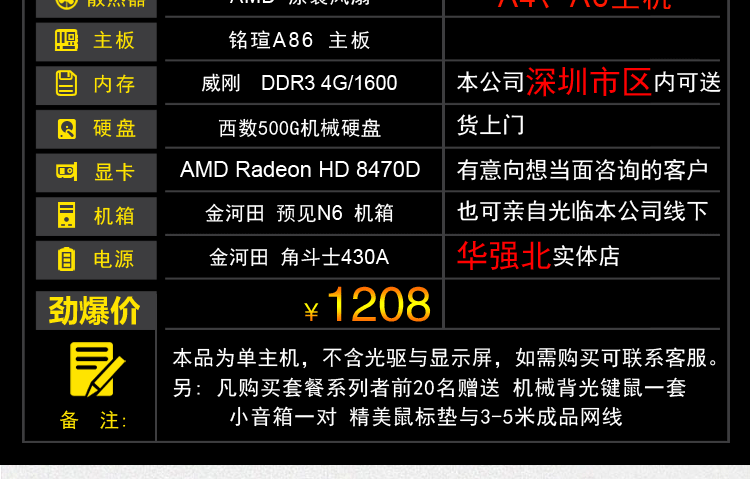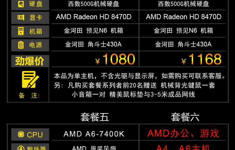 AMD A4/A6 조립 컴퓨터 호스트 DIY 데스크탑 듀얼 코어 LOL 게임 오피스 머신스토어 가기