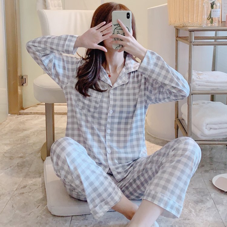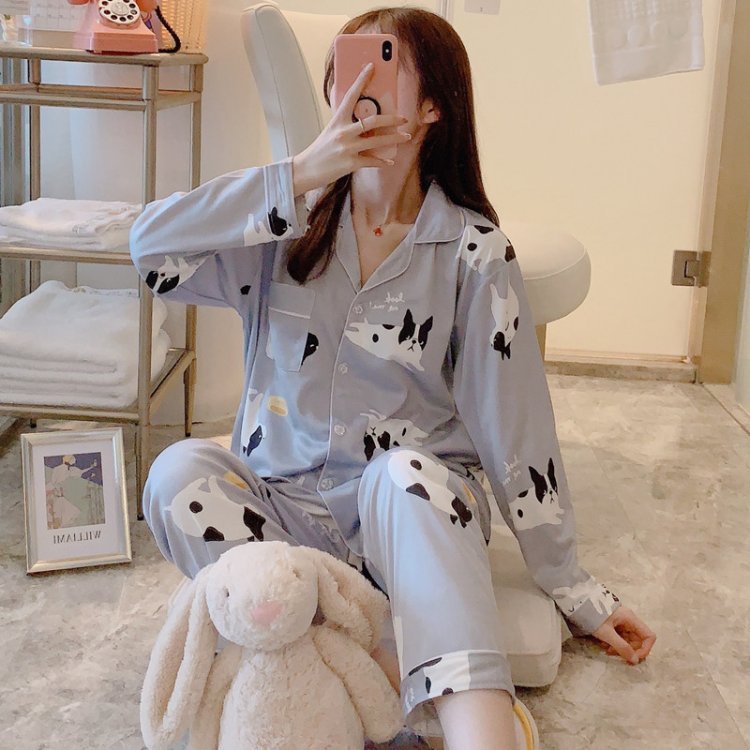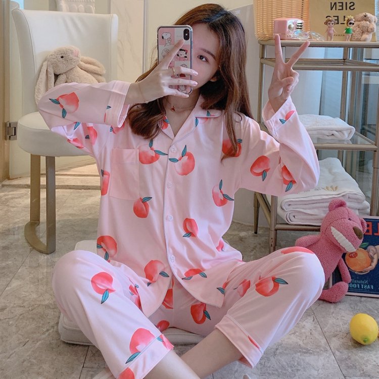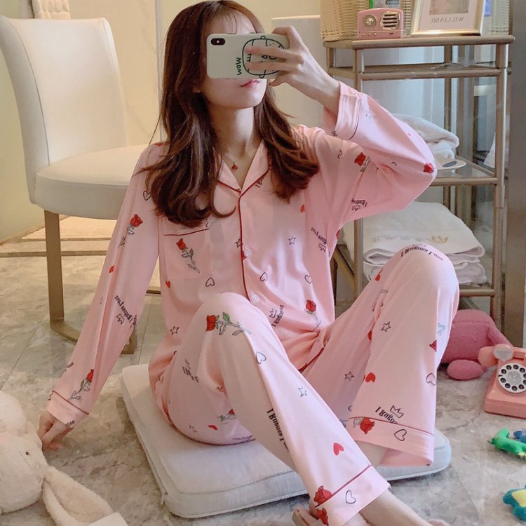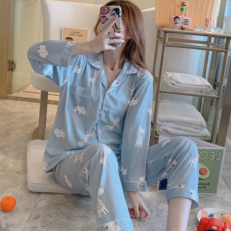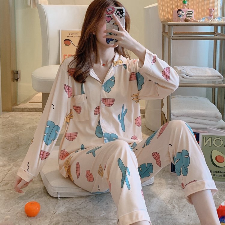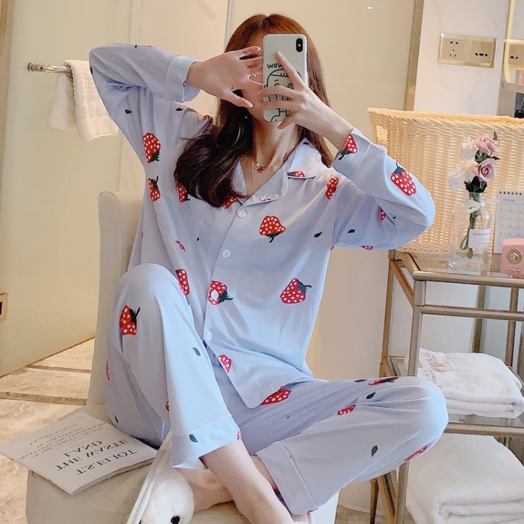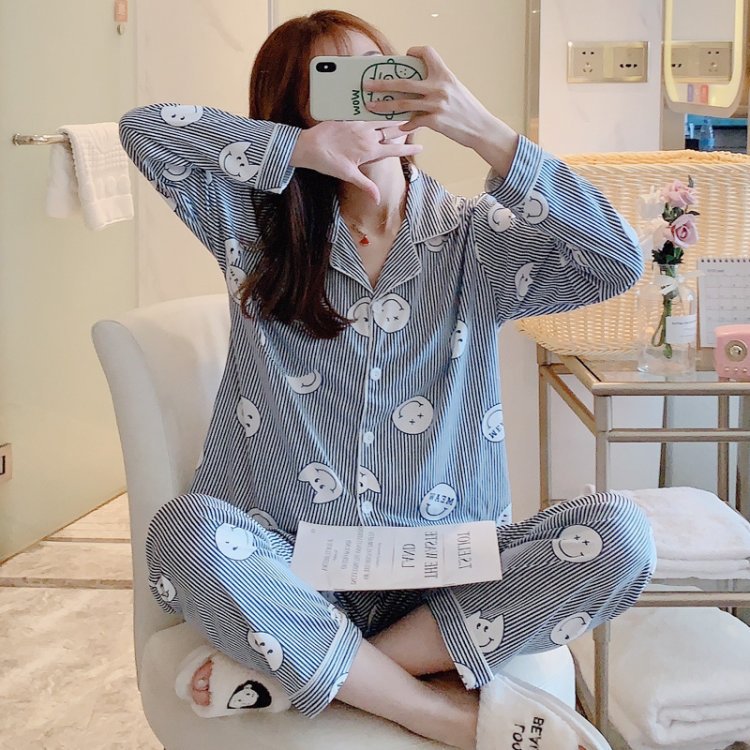 잠옷 여자의 봄과 가을 면 긴팔 가을과 겨울 면 한국식 귀여운 학생 아웃웨어 가정복 세트스토어 가기