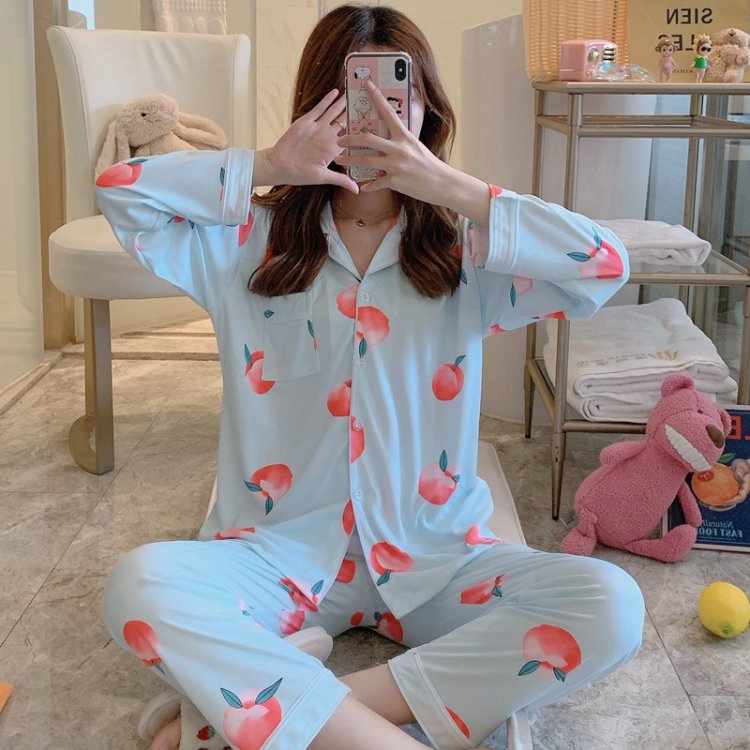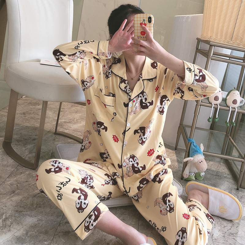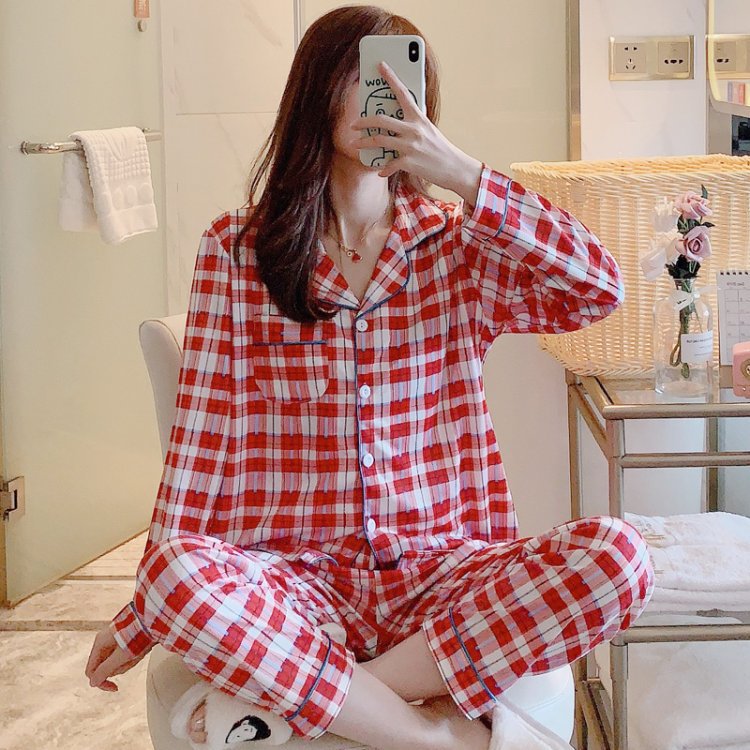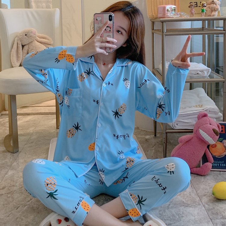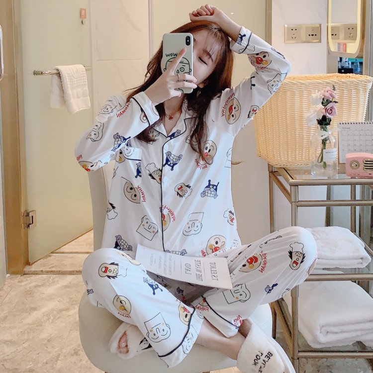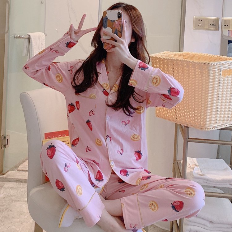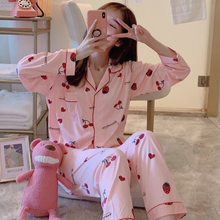 잠옷 여자의 봄과 가을 면 긴팔 가을과 겨울 면 한국식 귀여운 학생 아웃웨어 가정복 세트스토어 가기