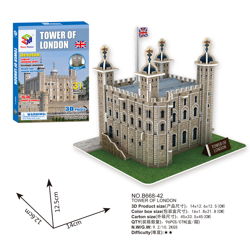 地标建筑物(24款):英国伦敦塔、迪拜酒店、英国大本钟、帝国大厦、荷兰大风车、玛雅金字塔、悉尼桥、东京塔、巴黎圣母院、自由女神像、比萨斜塔、埃菲尔铁塔、泰姬陵、白宫、凯旋门、瓦西里大教堂、悉尼歌剧院、长城、新天鹅堡、伦敦桥、迪拜塔,承天门,太和殿,天坛。