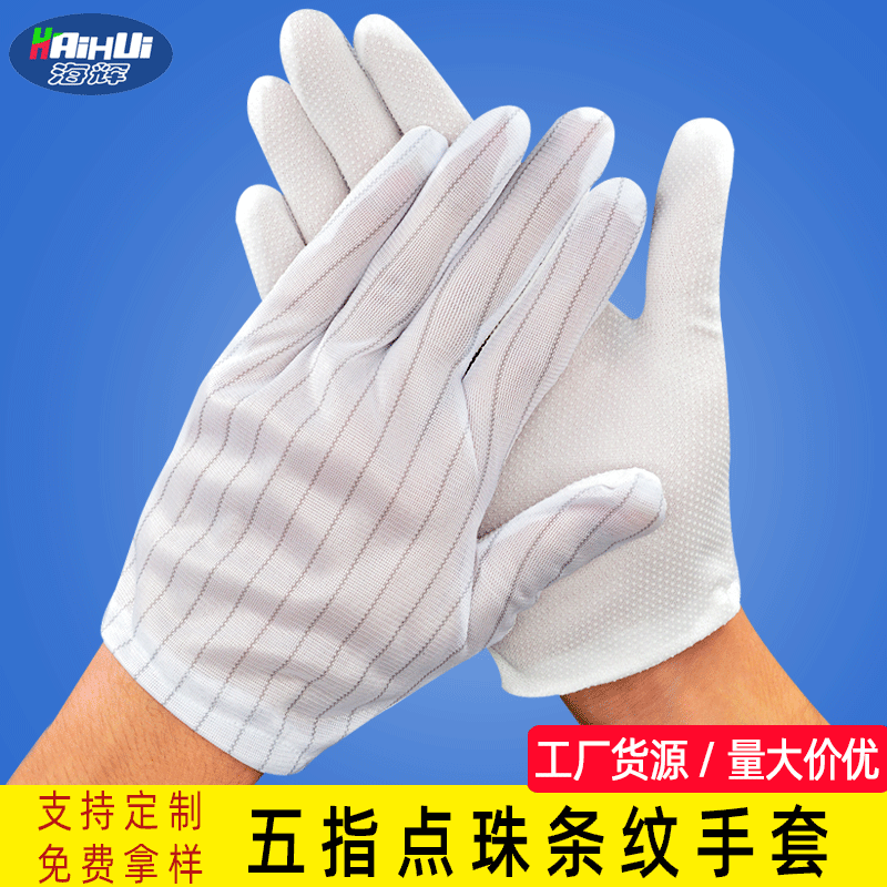 정전기 방지 장갑 줄무늬 분배 미끄럼 방지 장갑 먼지 없는 작업장 전자 공장 작업 장갑 미끄럼 방지 도트 플라스틱 장갑