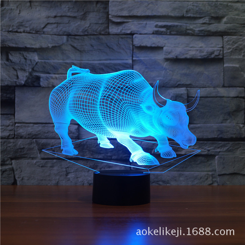 새로운 동물 황소 모양 3 LED 터치 컨트롤 7색 리모컨 16색 선물 분위기 시각 3D 야간등 3417