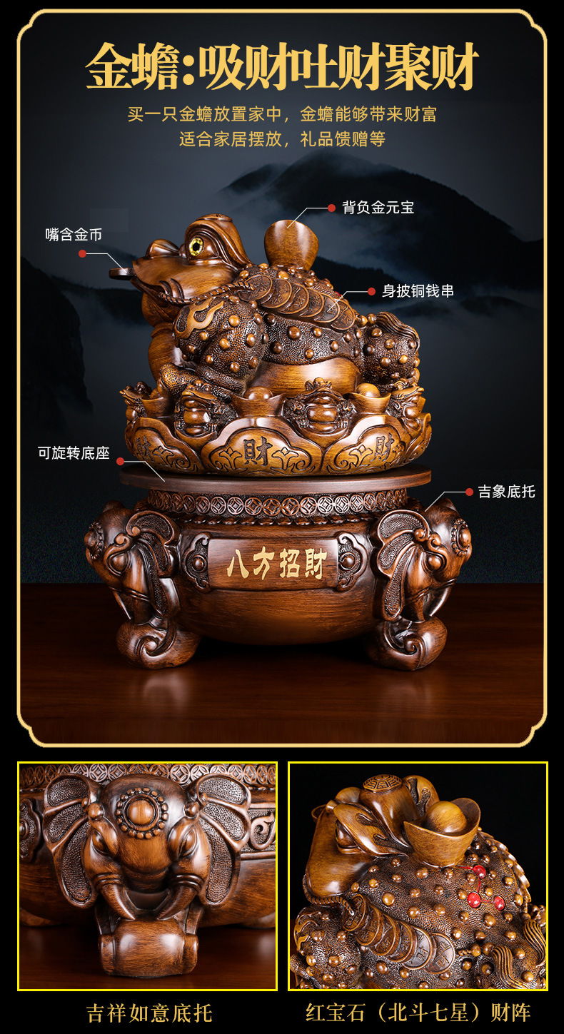 중국 황금 두꺼비 장식품 사무실 거실 가구 장식 수지 공예품 가게 오프닝 선물 도매