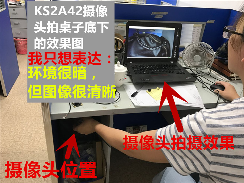实拍效果图二:(摄像头在办公桌底下,灯光比较暗的效果)
