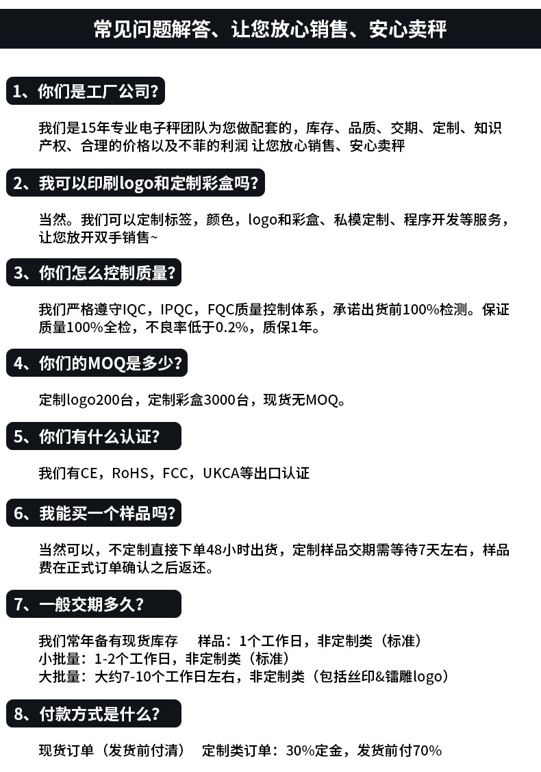 产品功能:单位切换/去皮清零/计数功能/过载保护/低电显示/自动关机