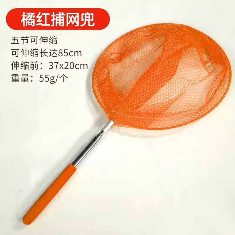 产品规格:网柄拉出长约85厘米左右,缩后约50cm左右,金属网圈直径约20CM,网深20CM.