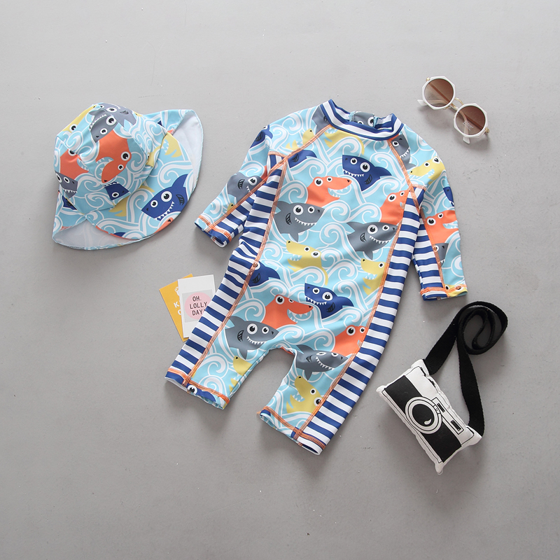 영국 소년 선 스크린 어린이 아기 원피스 서핑 옷 조수 어린이 해변 수영복 세트 수출