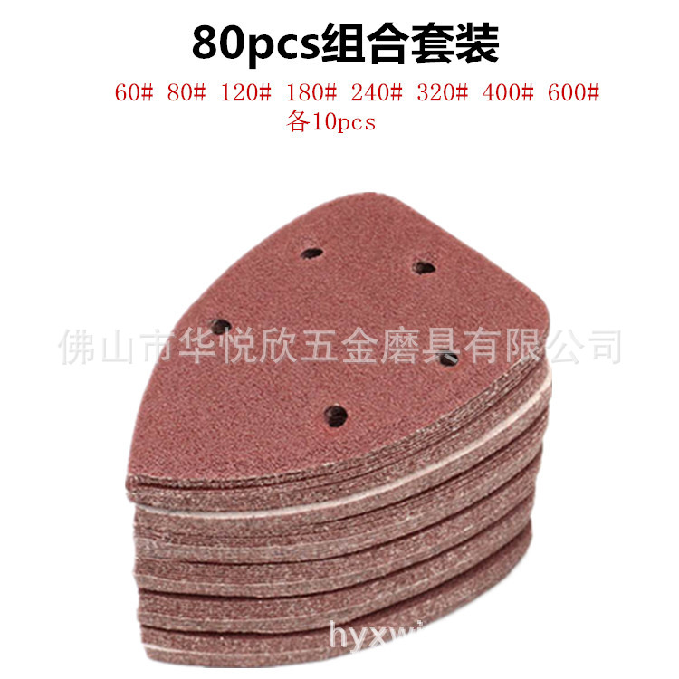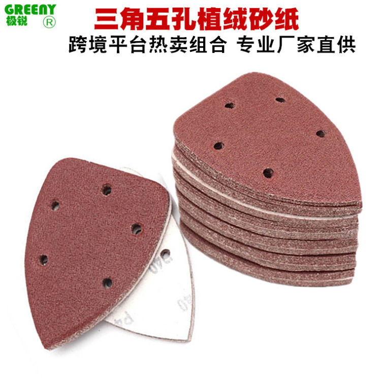 品名:三角形5孔植绒砂纸片