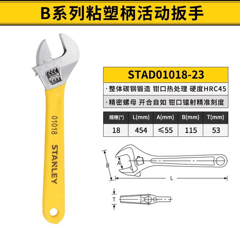 스탠리 B 시리즈 플라스틱 손잡이 조절 가능한 렌치 자동 수리 도구 기계 수리 다기능 조절 가능한 렌치 4-18 인치