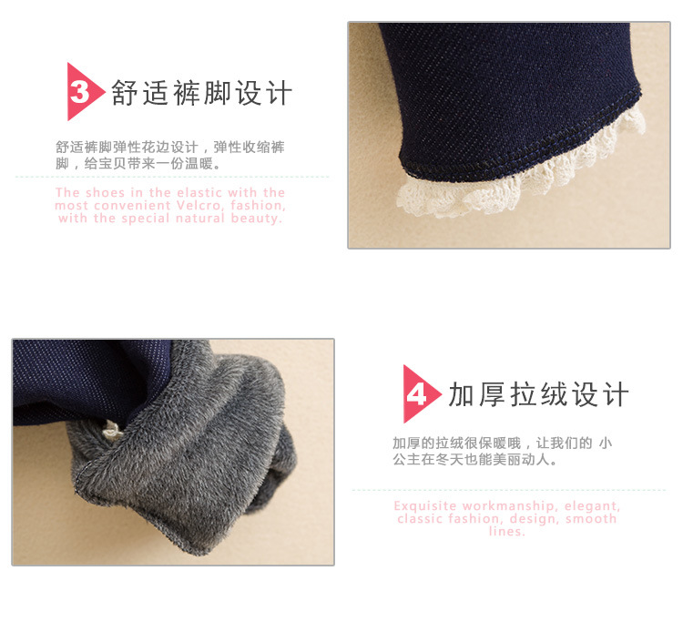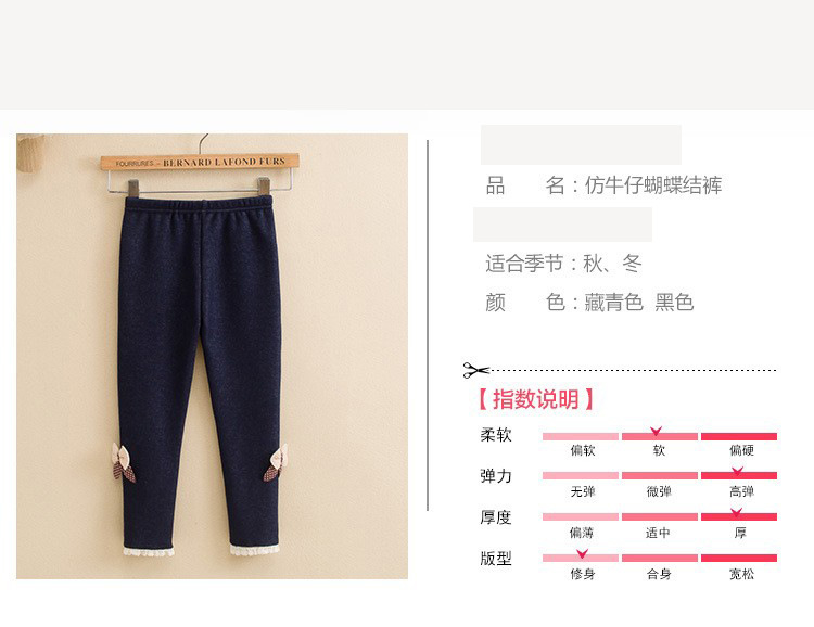 가을과 겨울 소녀 귀여운 활 모방 데님 레깅스 중소 소녀 벨벳 두꺼운 따뜻한 캐주얼 바지스토어 가기