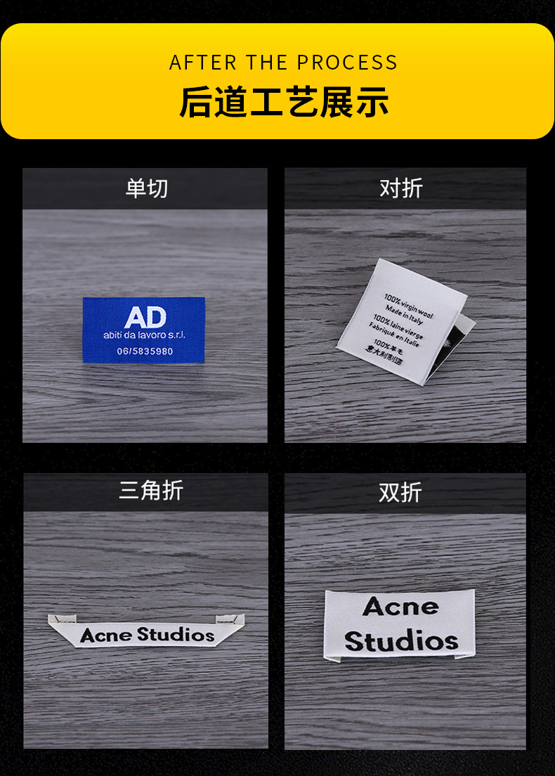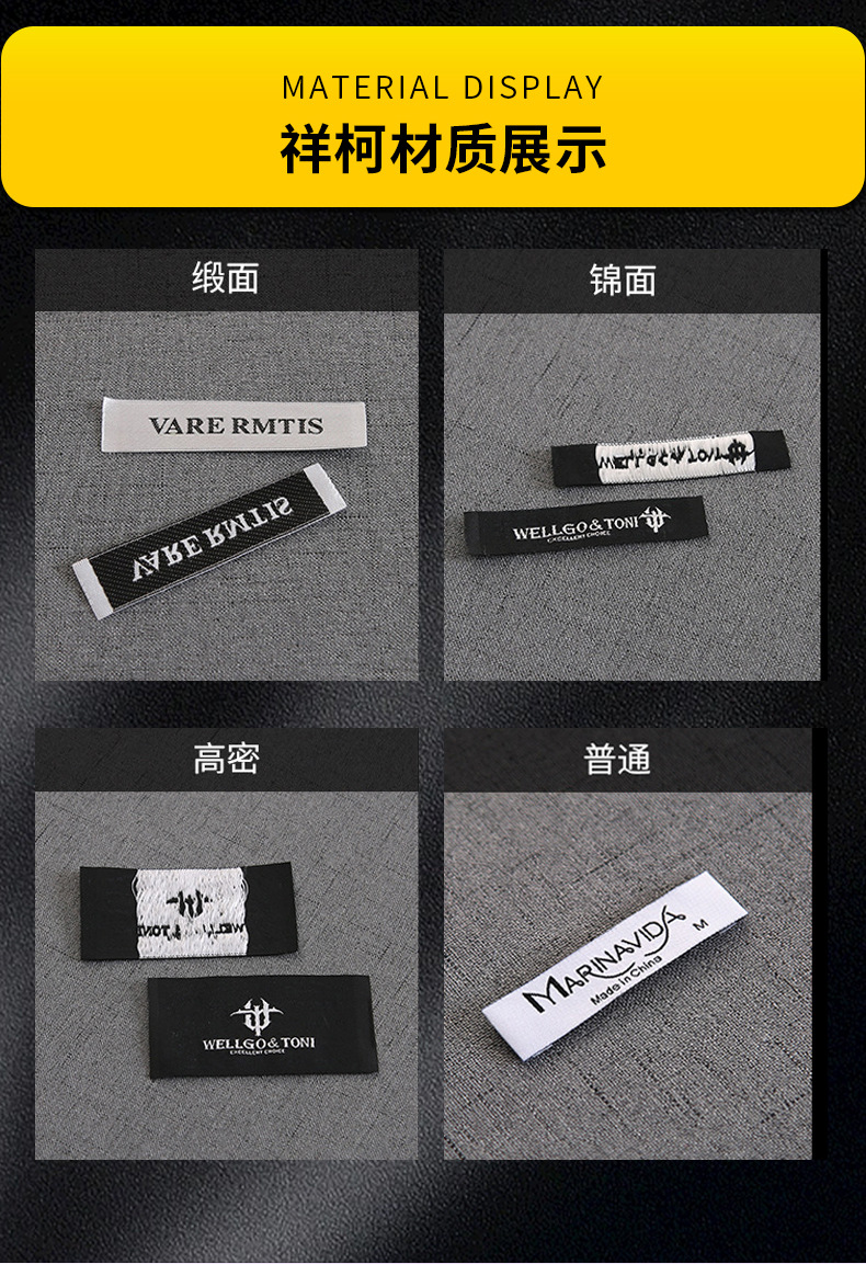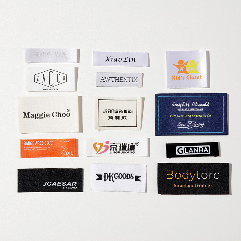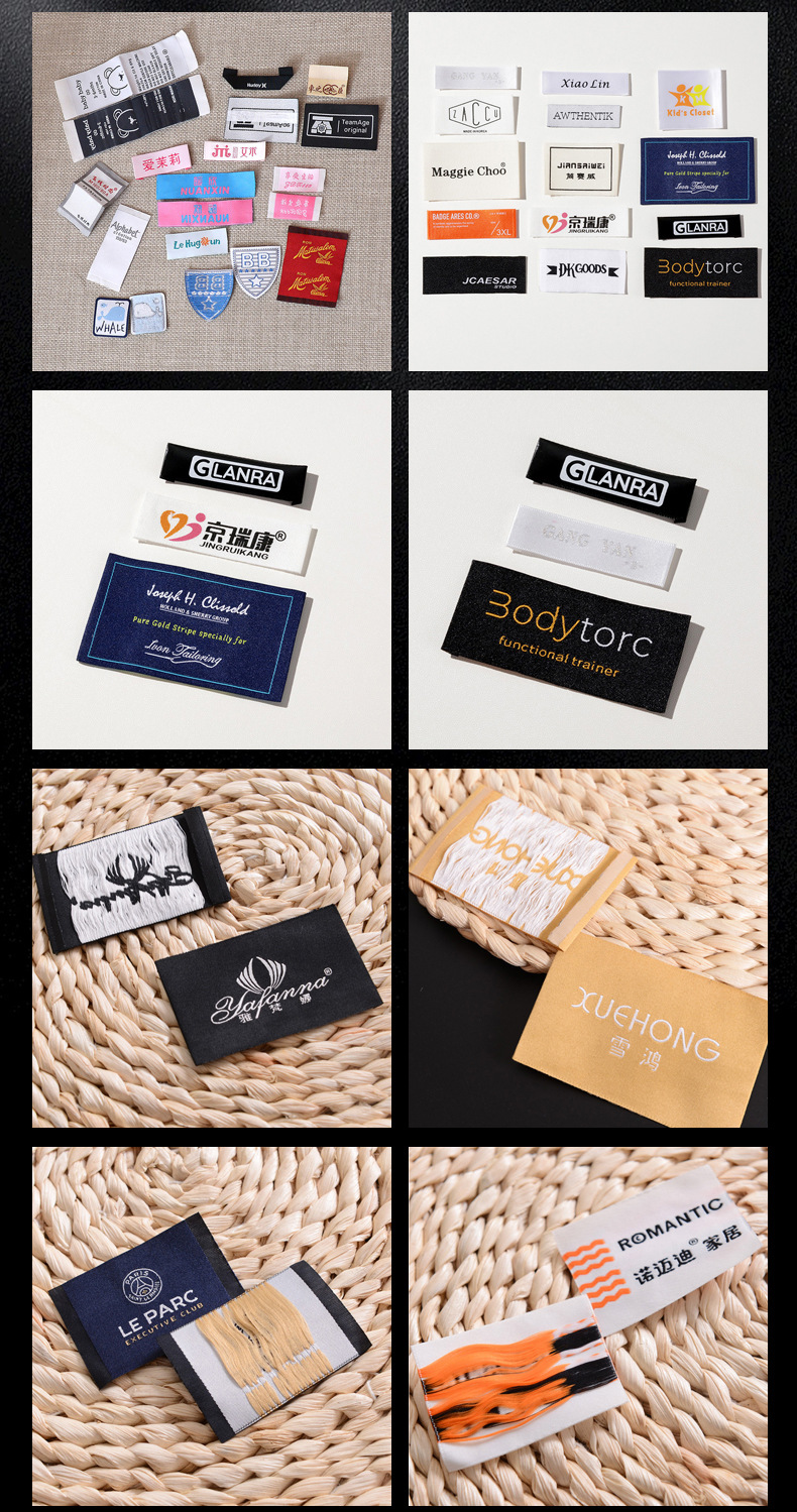 제조 업체 도매 무료 배송 의류 액세서리 가슴 라벨 견장 칼라 라벨 천 라벨 높은 위사 밀도 원사 부드러운 직조 라벨 직조 라벨스토어 가기