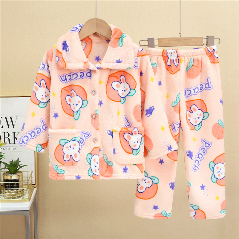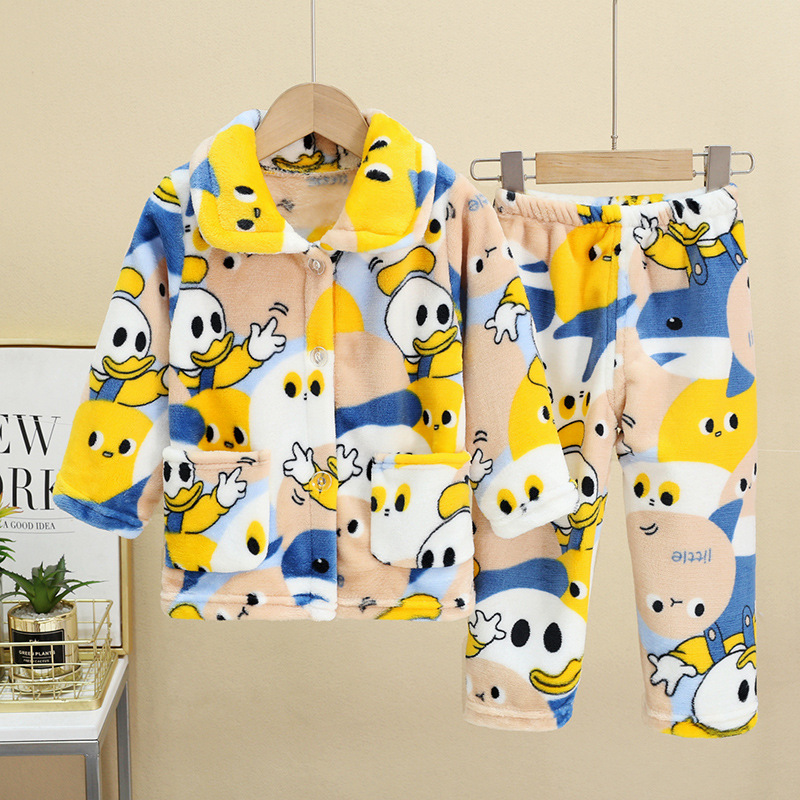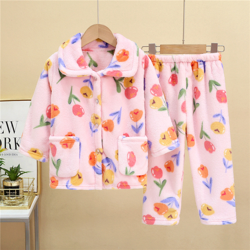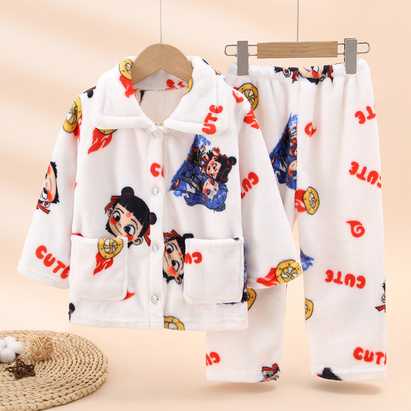 새로운 두꺼운 가을과 겨울 어린이 플란넬 잠옷 소녀와 소년 세트 큰 아이들의 가정 옷 머리카락의 세대