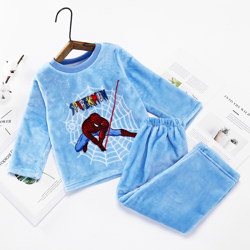 새로운 두꺼운 가을과 겨울 어린이 플란넬 잠옷 소녀와 소년 세트 큰 아이들의 가정 옷 머리카락의 세대스토어 가기