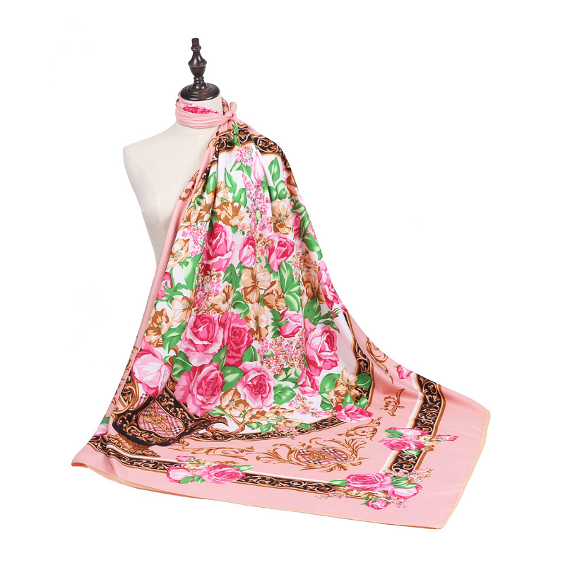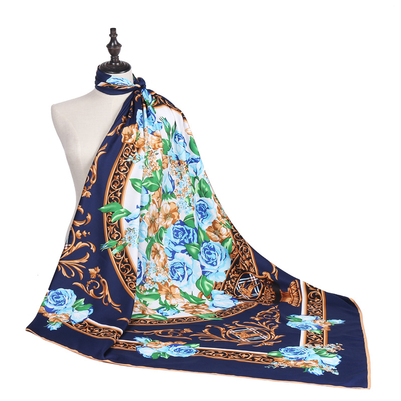 가오 헤 가을과 겨울 새로운 130cm 트윌 실크 같은 큰 사각형 스카프 거울 꽃 달 모란 꽃 여성 스카프스토어 가기