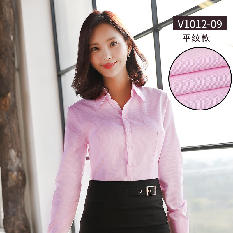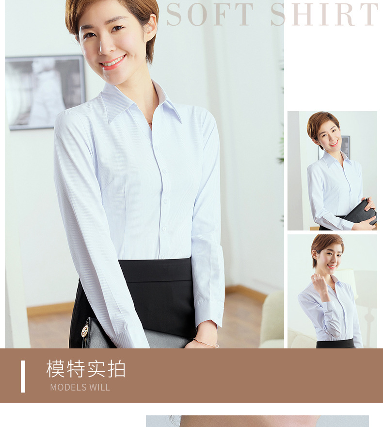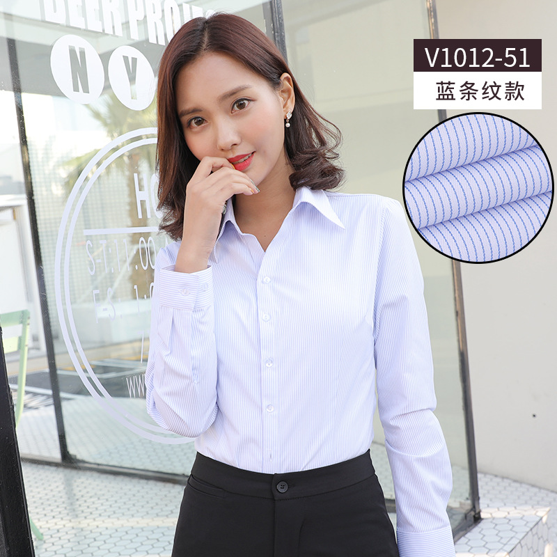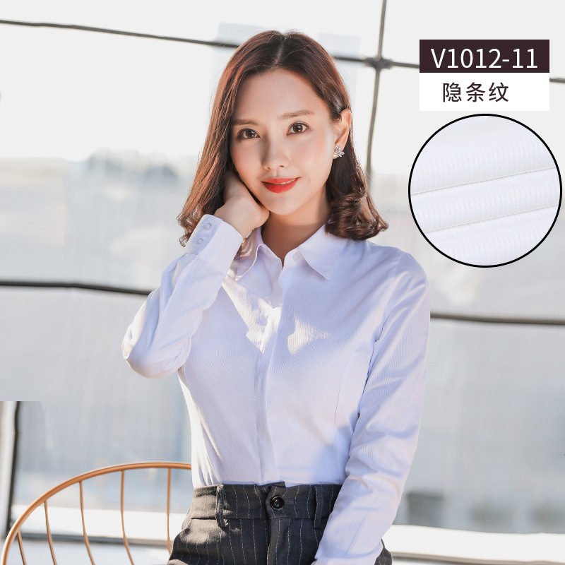 2025 새로운 여성 긴팔 흰색 셔츠 OL 슬림 전문 인터뷰 작업복 코튼 v 넥 셔츠 공식 칼라스토어 가기