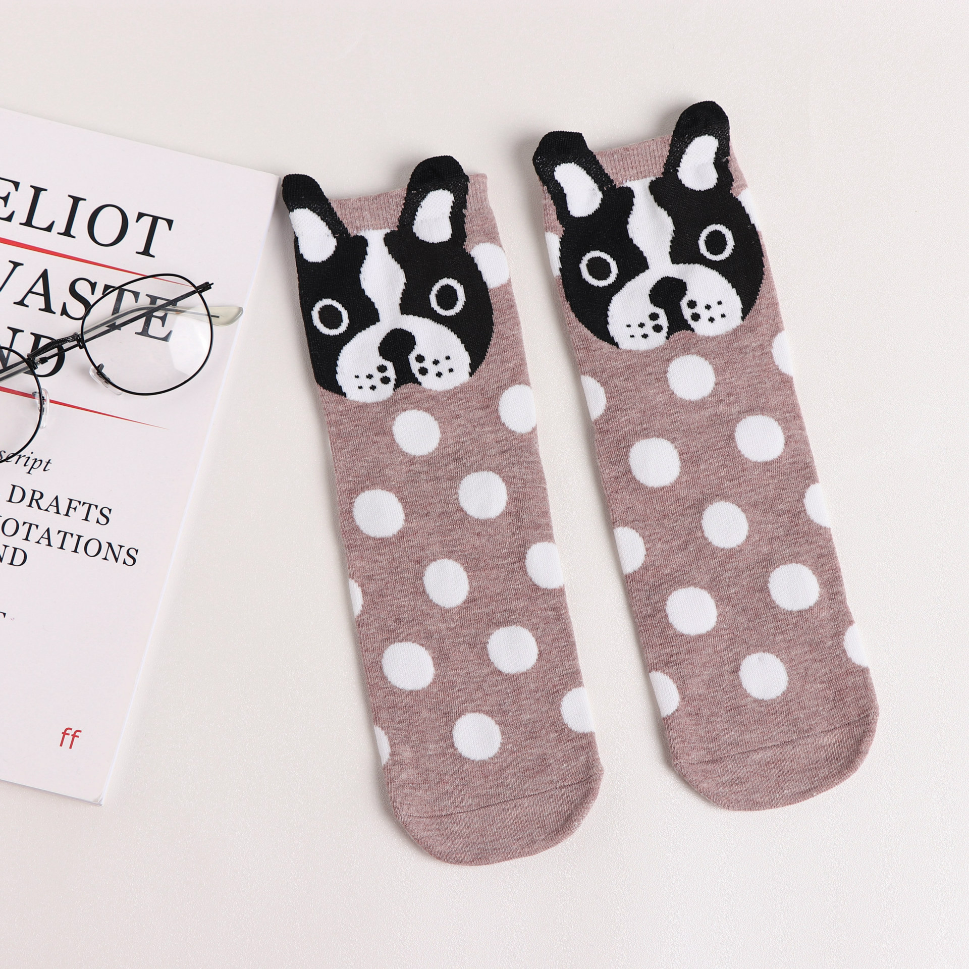 봄과 가을 새로운 만화 여성 양말 성인 동물 귀여운 여성 양말 강아지 면 양말 편안한 면 양말