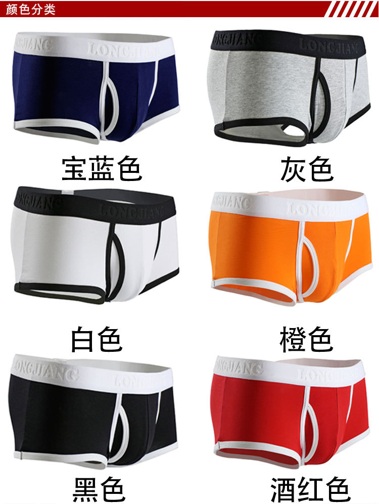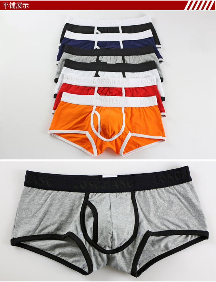 Longjiang 사이드 오픈 남성 속옷, 사각 팬티, 중간 허리 솔리드 컬러 통기성 U 볼록 남성 사각 팬티, 대외 무역 모델스토어 가기